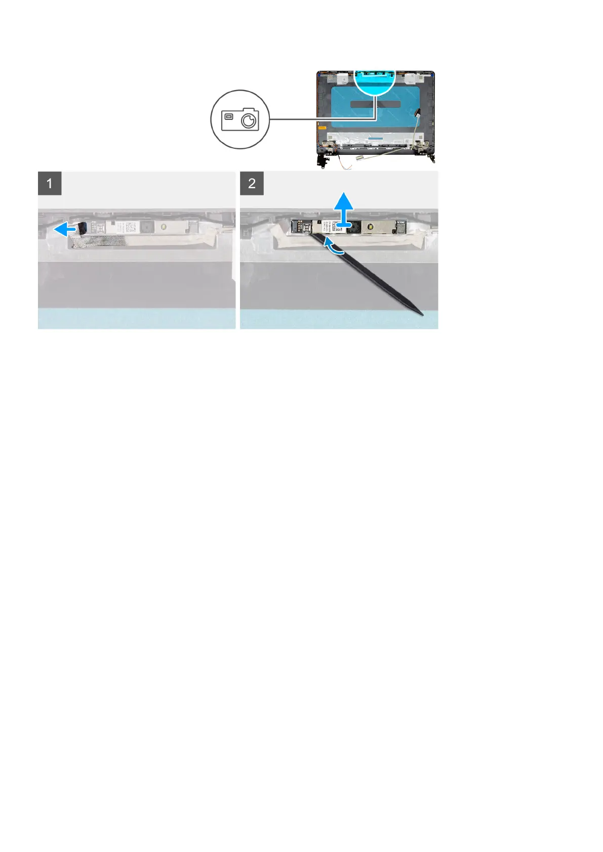 2. Using a plastic scribe, pry the camera module from the display assembly.