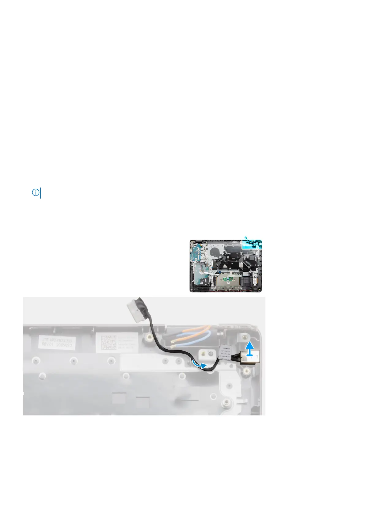 Lift the power-adapter port from its slot on the palm-rest and keyboard assembly.