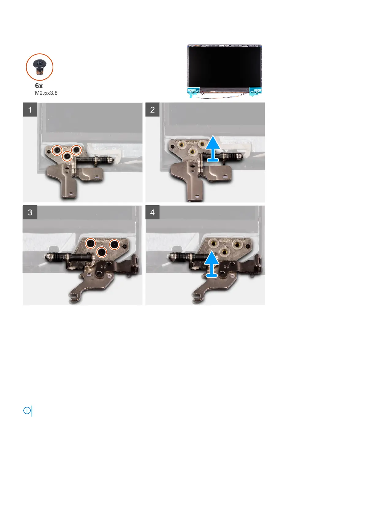 The following images indicate the location of the display hinges and provide a visual representation of the installation procedure.
