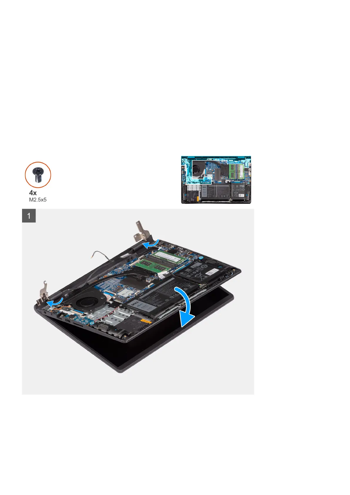 5. Open the display hinges at an angle of 90 degrees, and place the system on a flat surface.