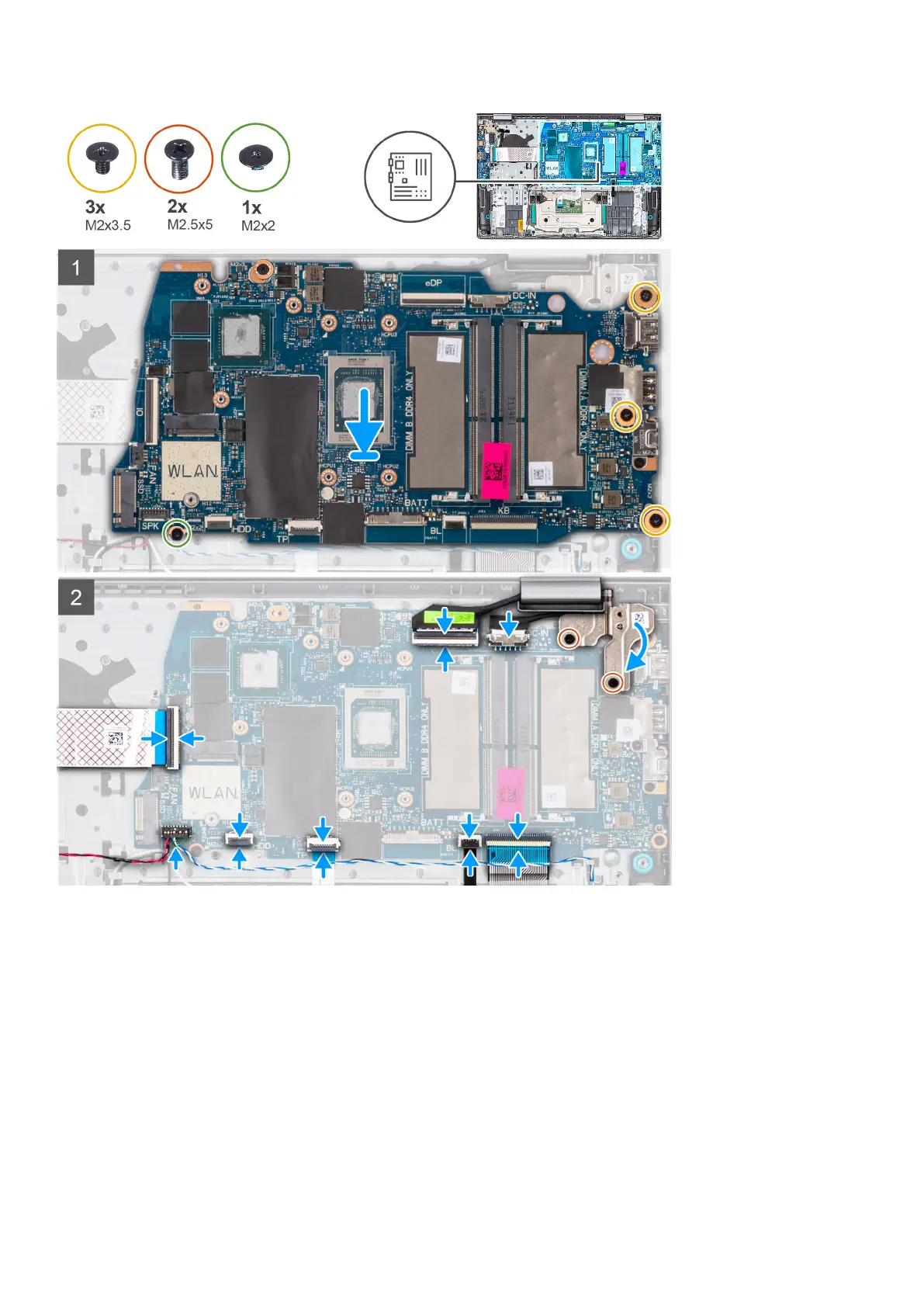 4. Replace the three (M2x3.5) screws that secure the system board to the palm-rest assembly.
