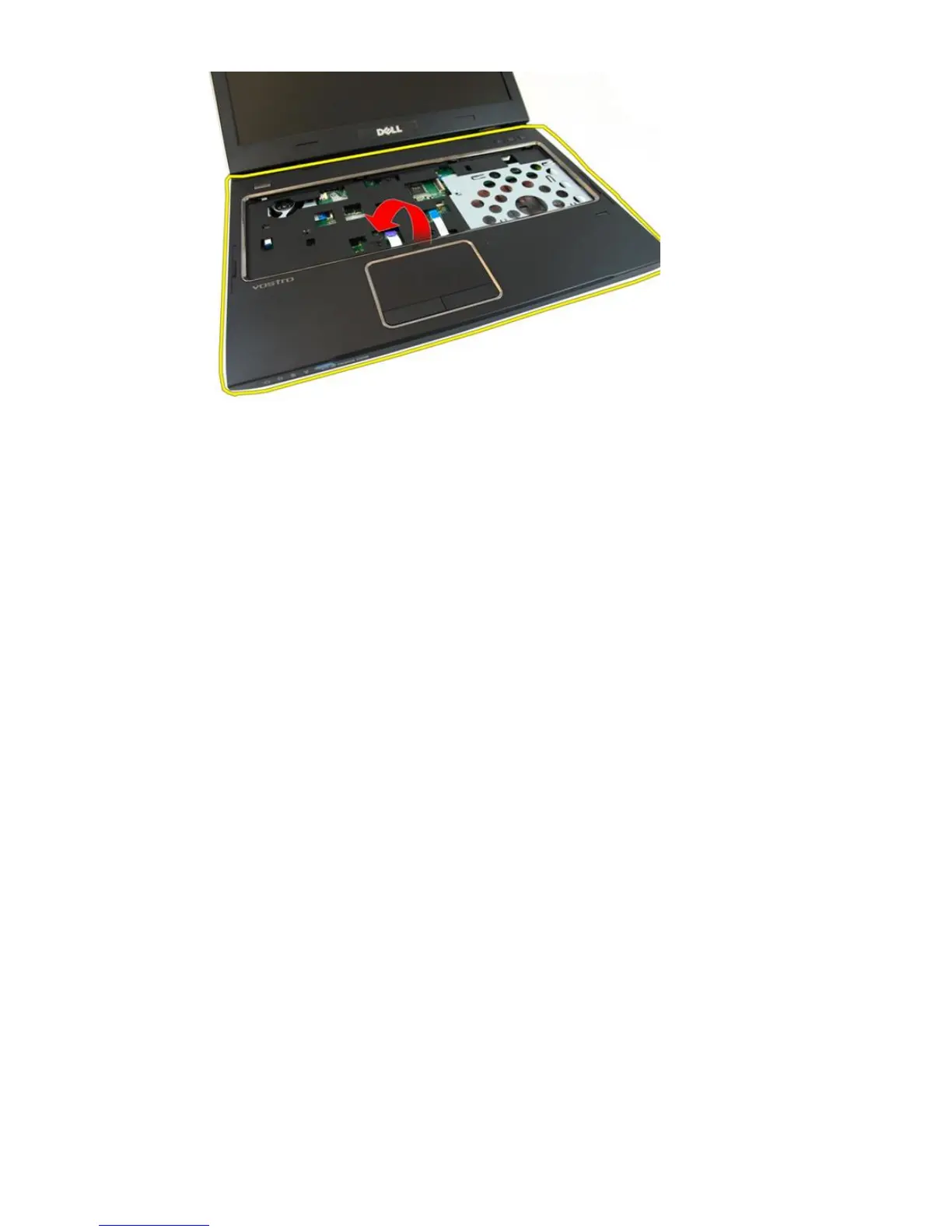 1. Starting from the right edge of the palm rest, press downwards on the system to