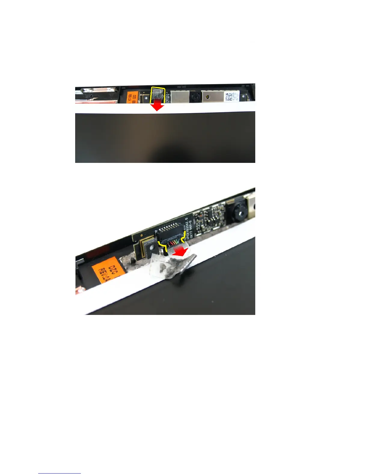 11. Disconnect the camera cable and remove the display camera.