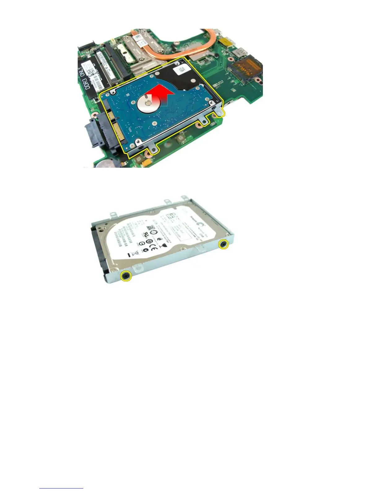 17. Remove the screws that secures the hard-drive bracket on one side.
