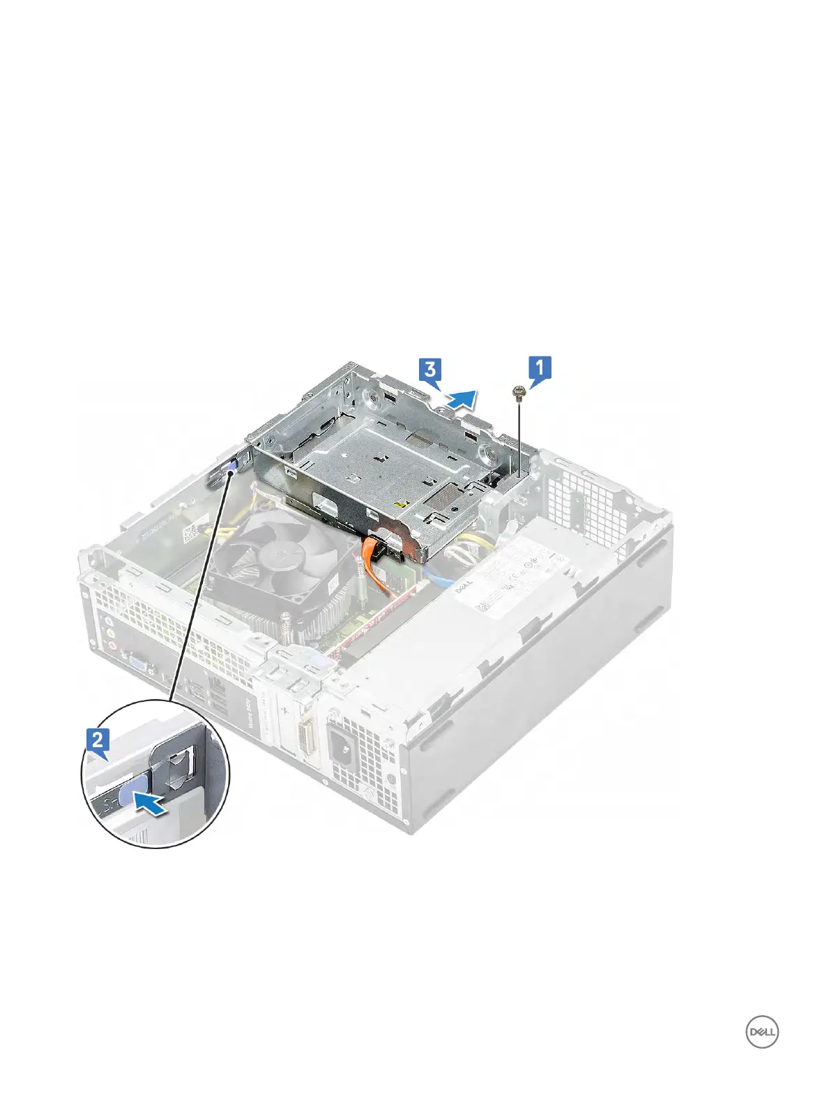 4 Follow the steps to remove the drive cage: