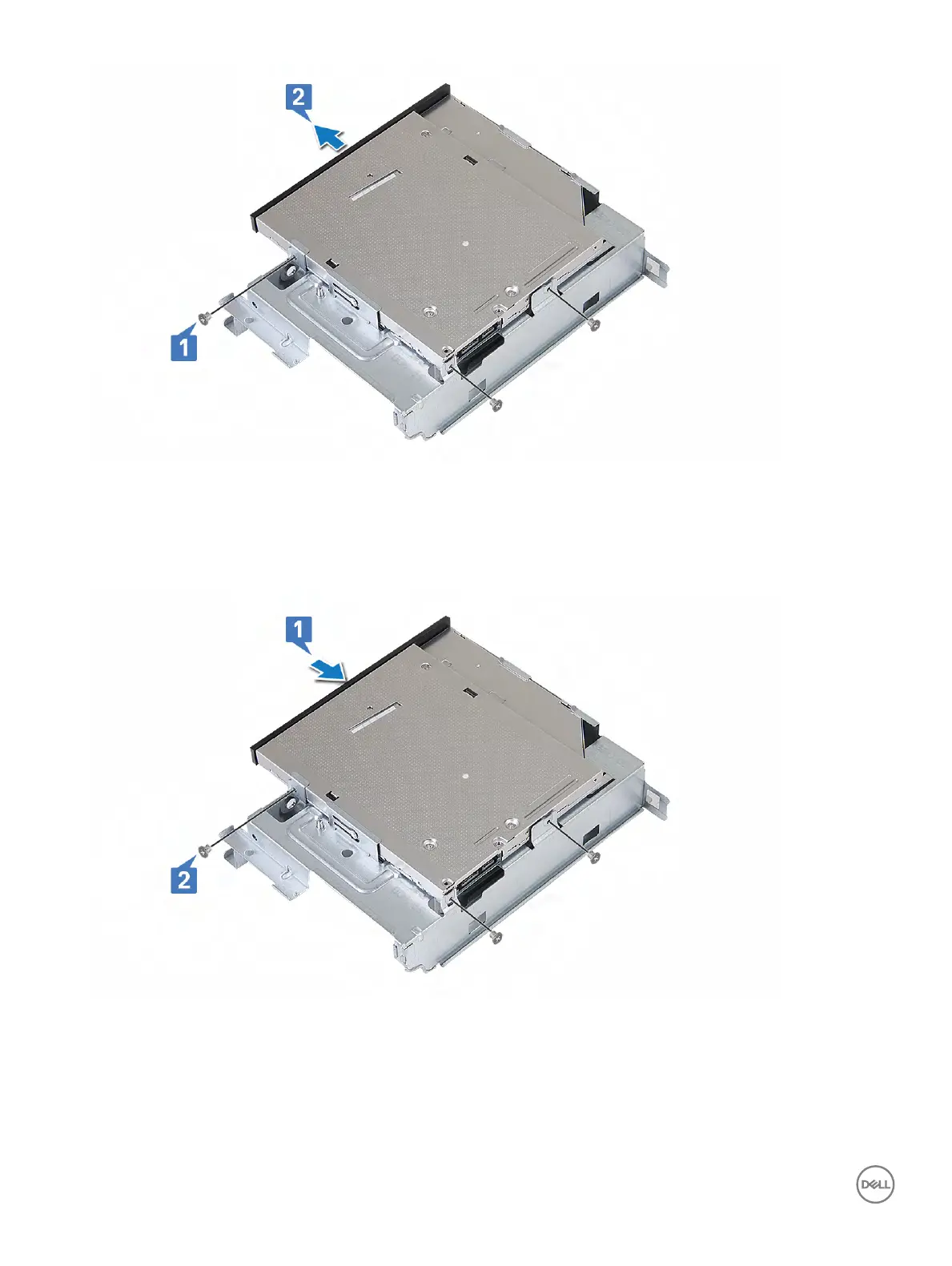 2 Tighten the three M2x2 screws to secure the optical drive to the bracket [2].