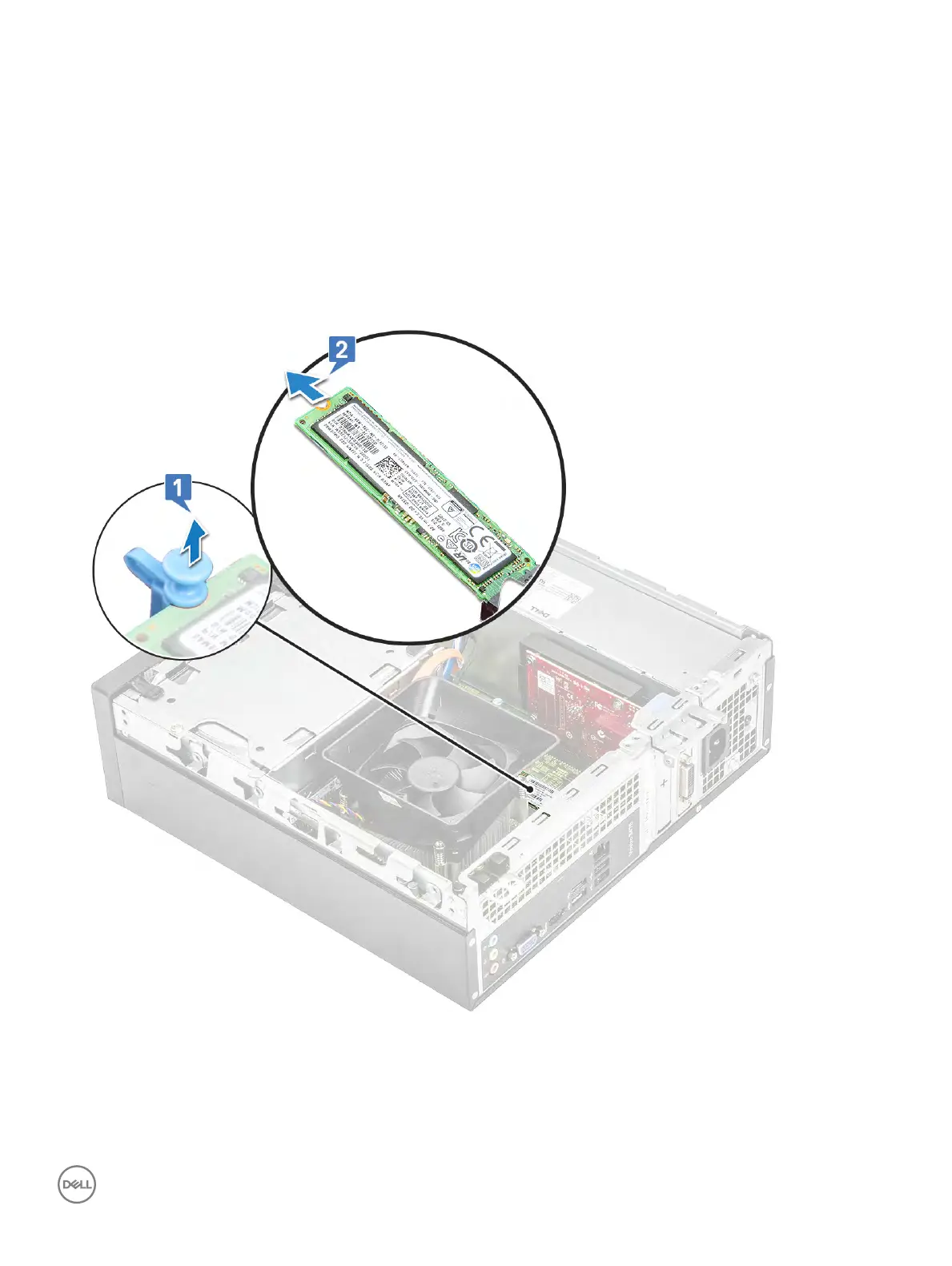 a Pull the blue tab that secures the M.2 SATA SSD to the system board [1].