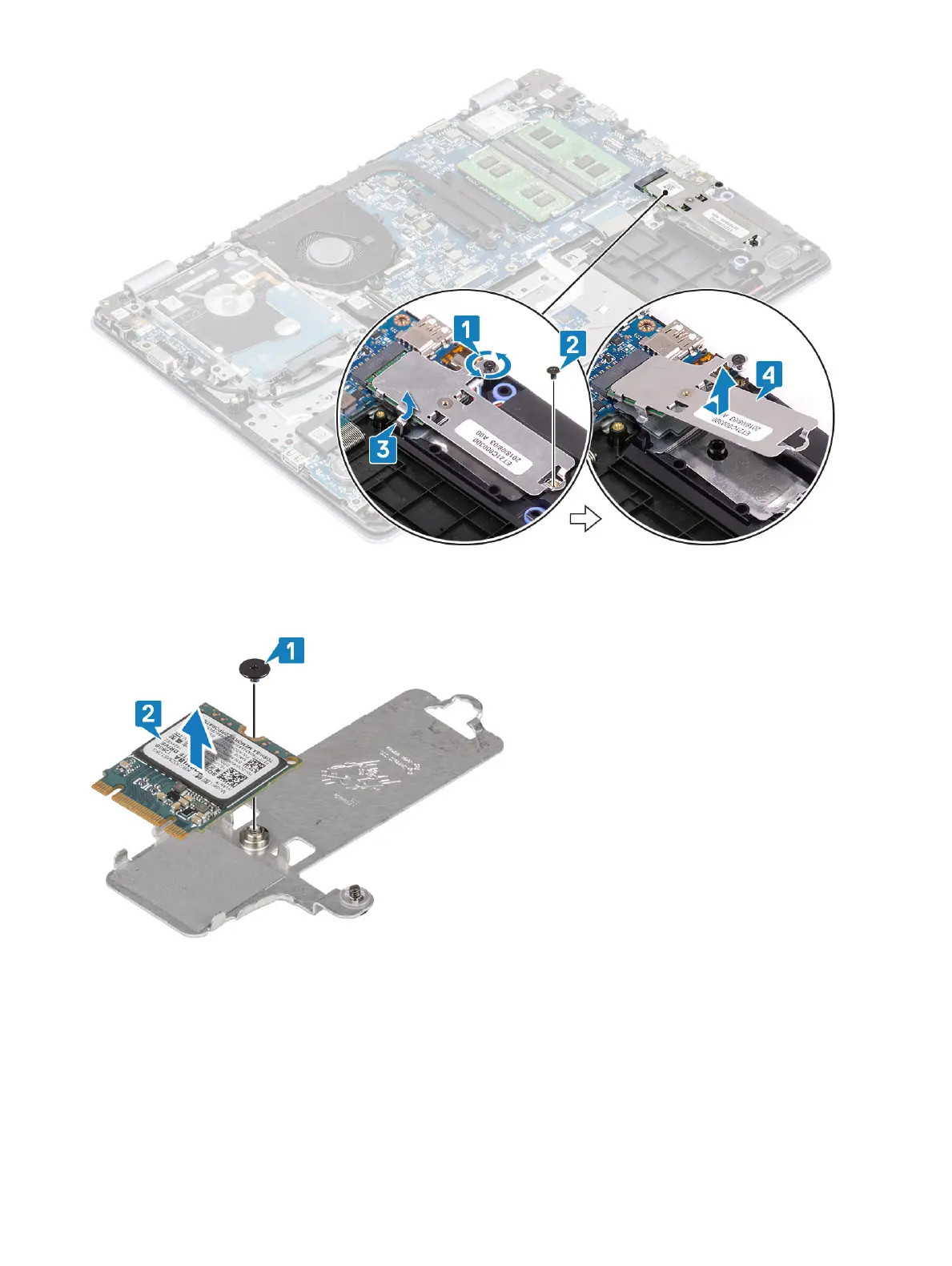 5 Remove the single (M2x2) screw that secures the solid-state drive to the thermal plate [1].