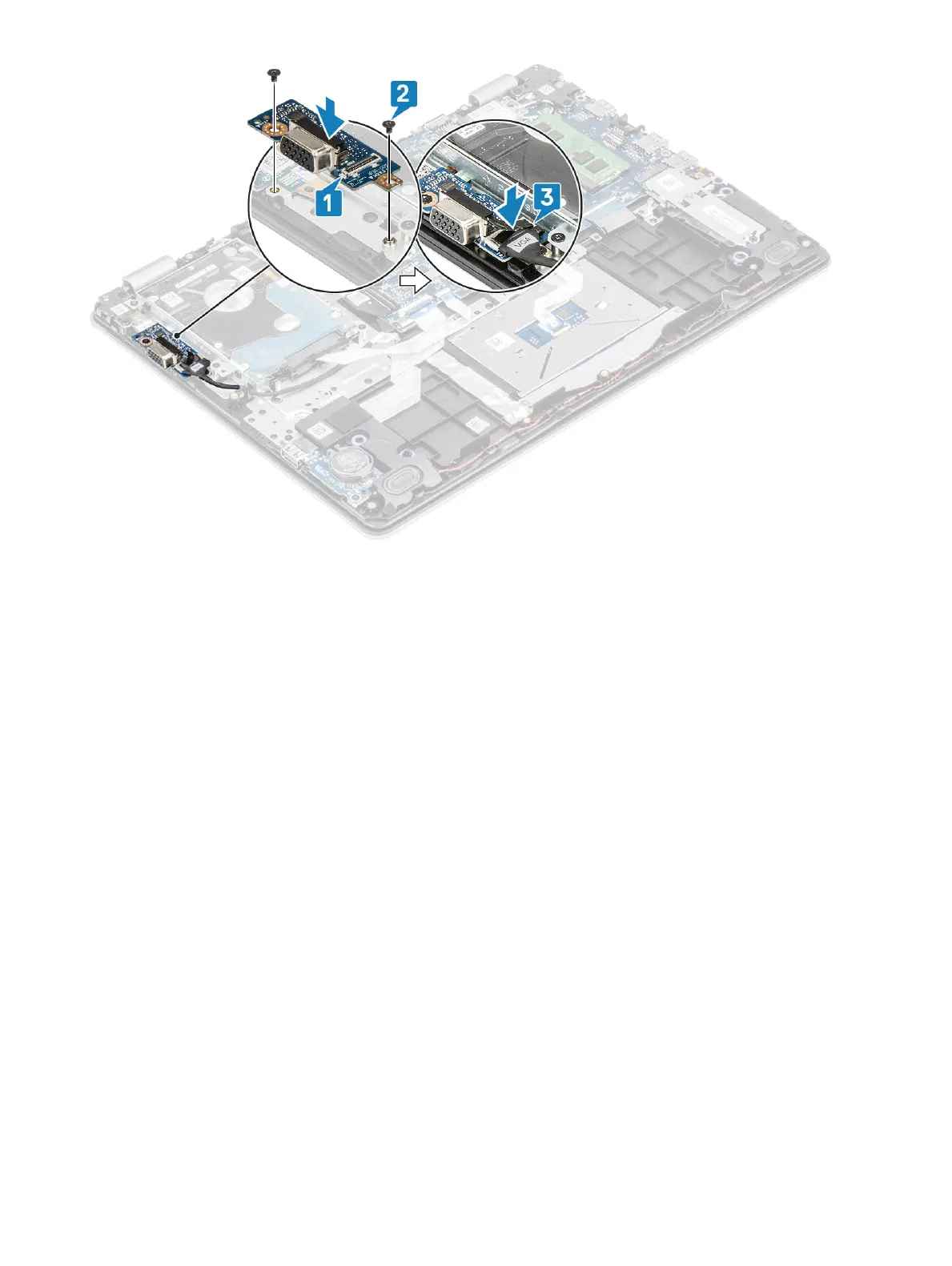 2 Unroute and remove the speaker cable from the routing guides on palm rest and keyboard assembly [2].