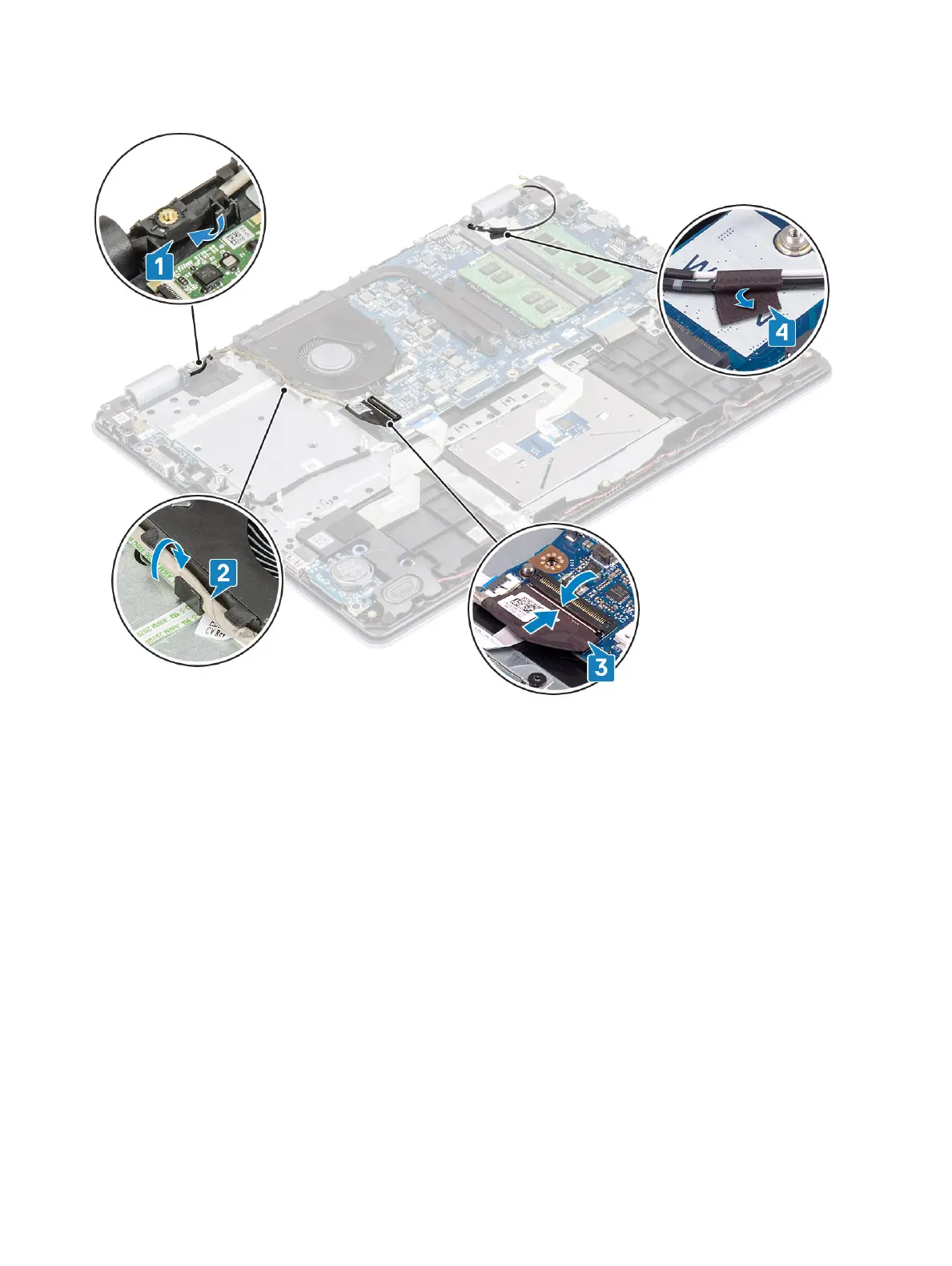 6 Ax the antenna cables to the system board [4].