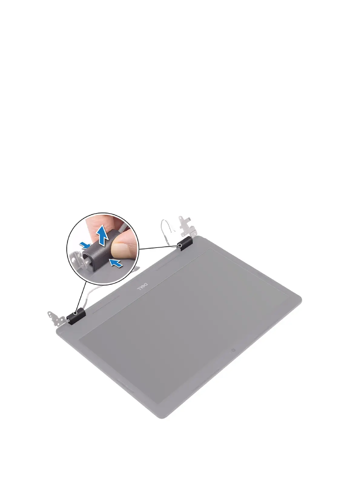 1 Push both sides of the display-hinge cover and lift it from the display back-cover and antenna assembly.