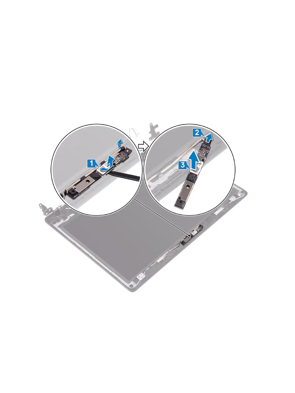 3 Lift the camera module from the display back-cover and antenna assembly [3].