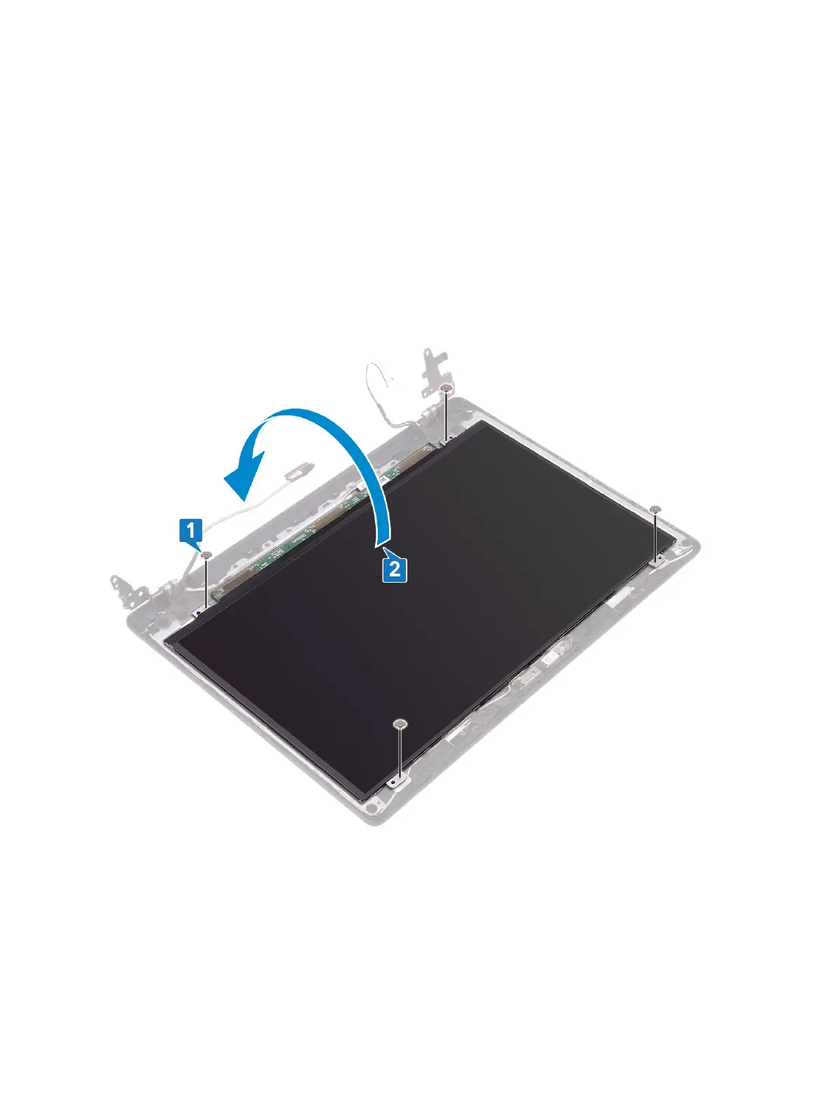 1 Remove the four (M2x2) screws that secure the display panel to the display back-cover and antenna assembly [1].