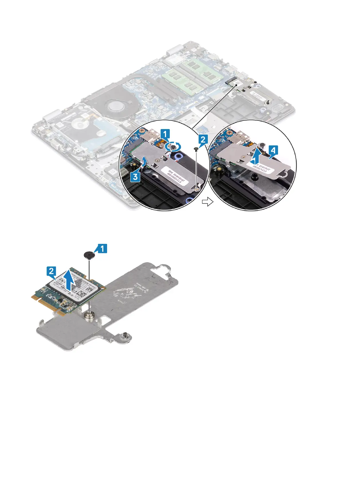 5. Remove the single (M2x2) screw that secures the solid-state drive to the thermal plate [1].