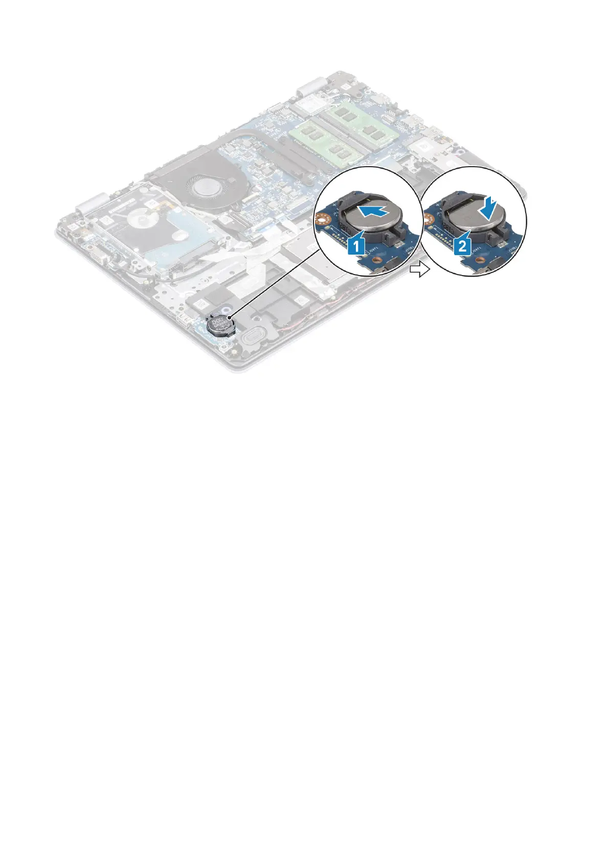 1. Connect the battery cable to the connector on the system board.