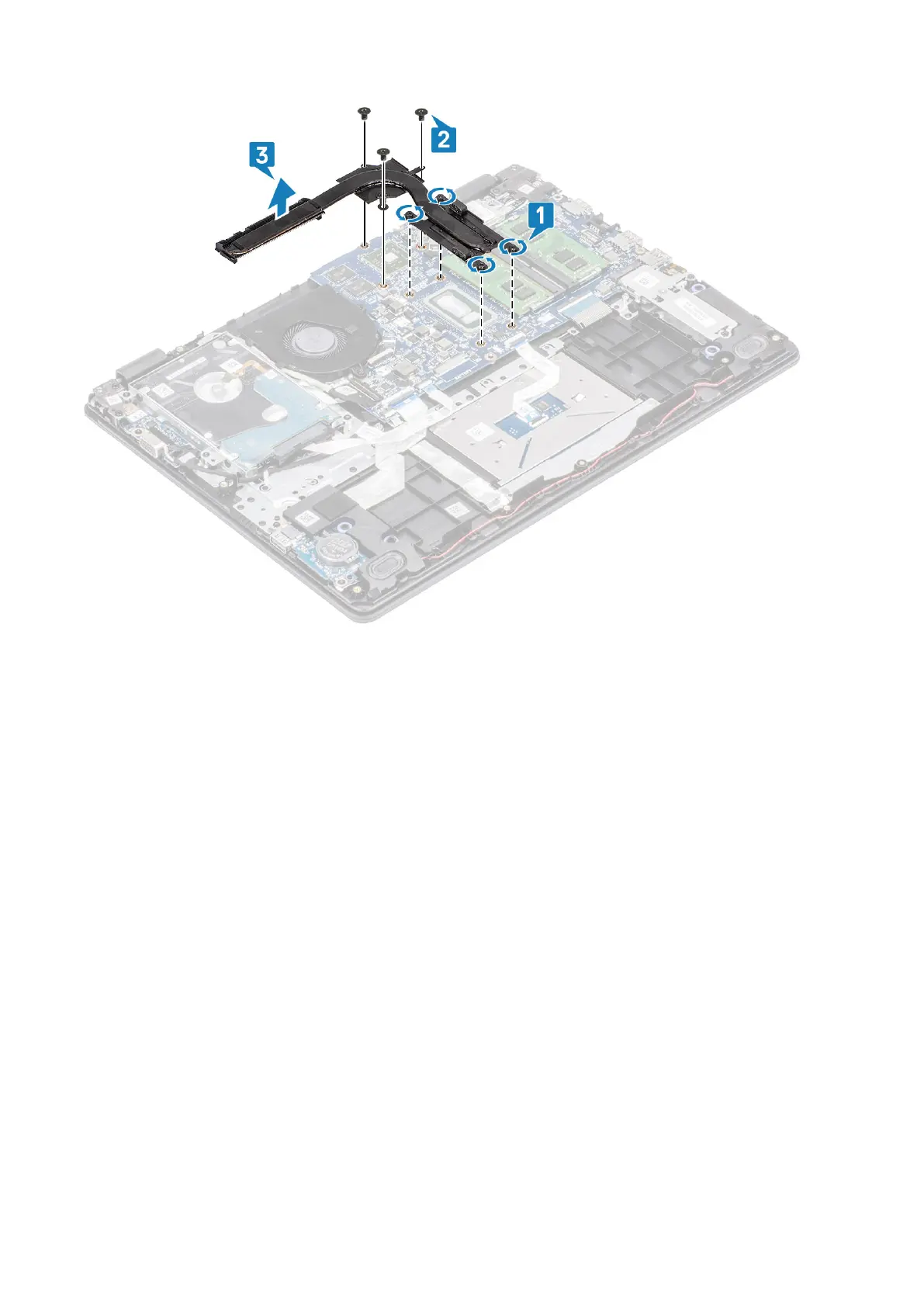 3. In sequential order (as indicated on the heatsink), tighten the four captive screws that secure the heatsink to the system board [3].