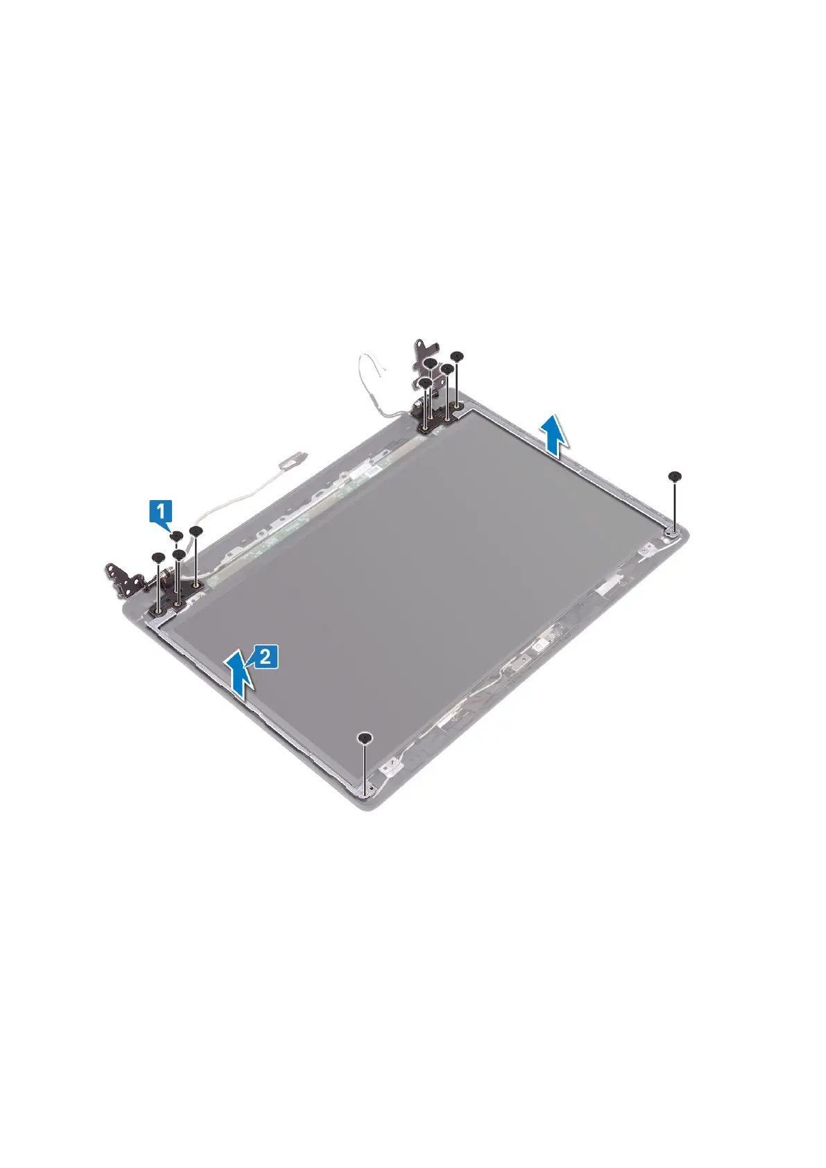 2. Replace the 10 (M2.5x2.5) screws that secure the hinges to the display back-cover and antenna assembly [2].