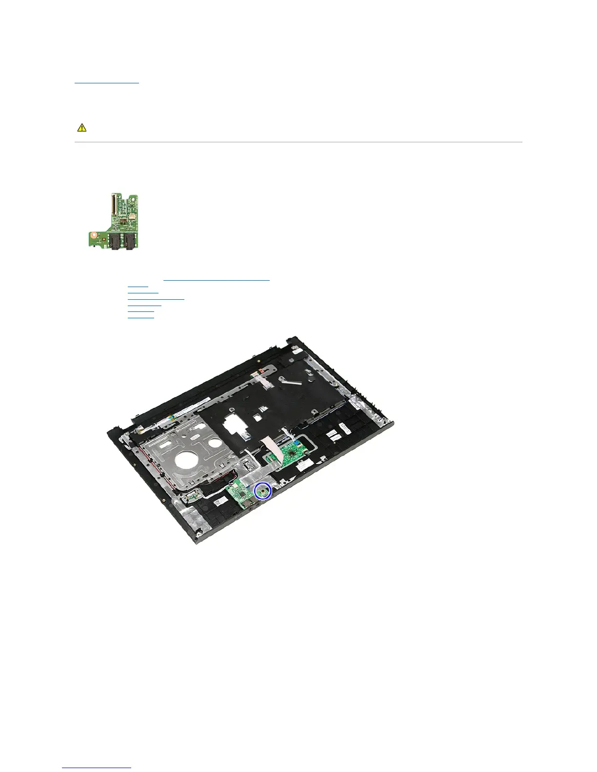 8. Remove the screw that secures the audio board to the palm rest.