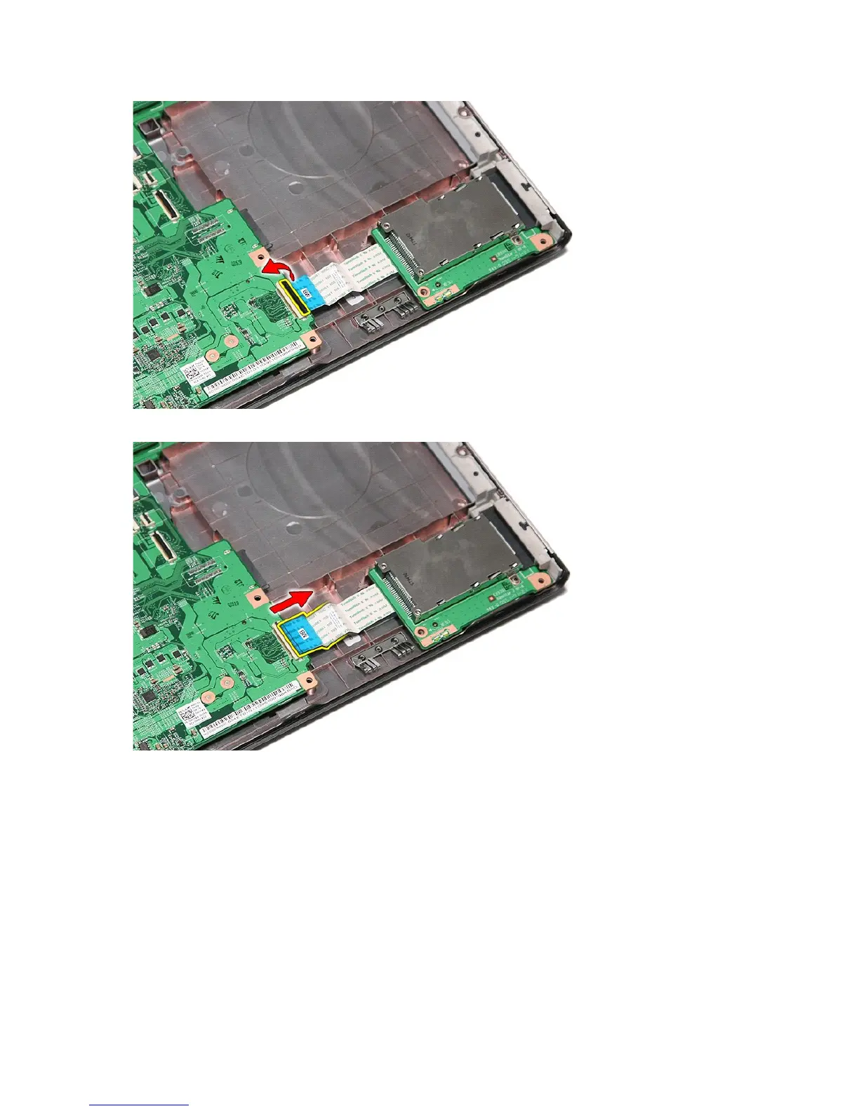 11. Disconnect the ExpressCard cage cable from its connector on the system board.
