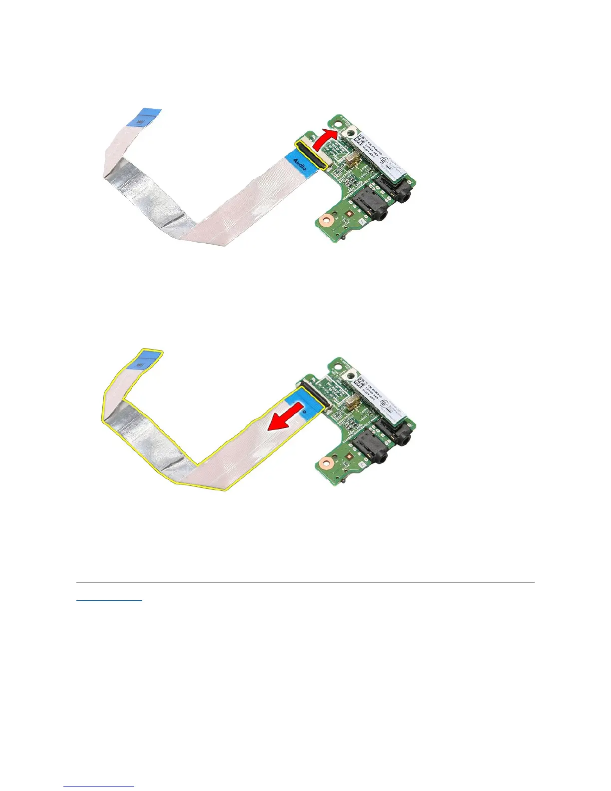 12. Disconnect the audio board data cable from its connector on the audio board.