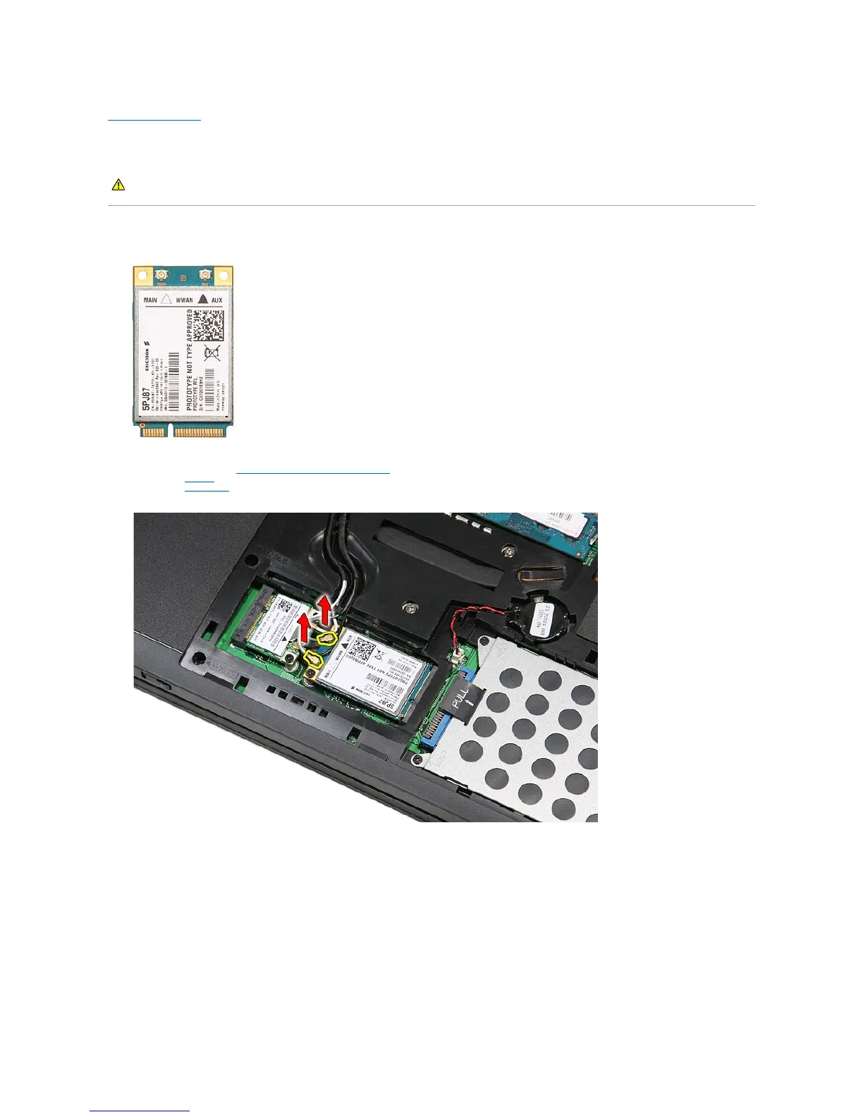 4. Disconnect the antenna cables from the WWAN card.