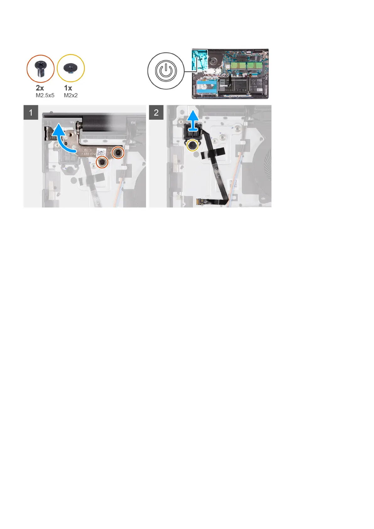 3. Remove the (M2x2) screw that secures the power button to the palmrest and keyboard assembly.