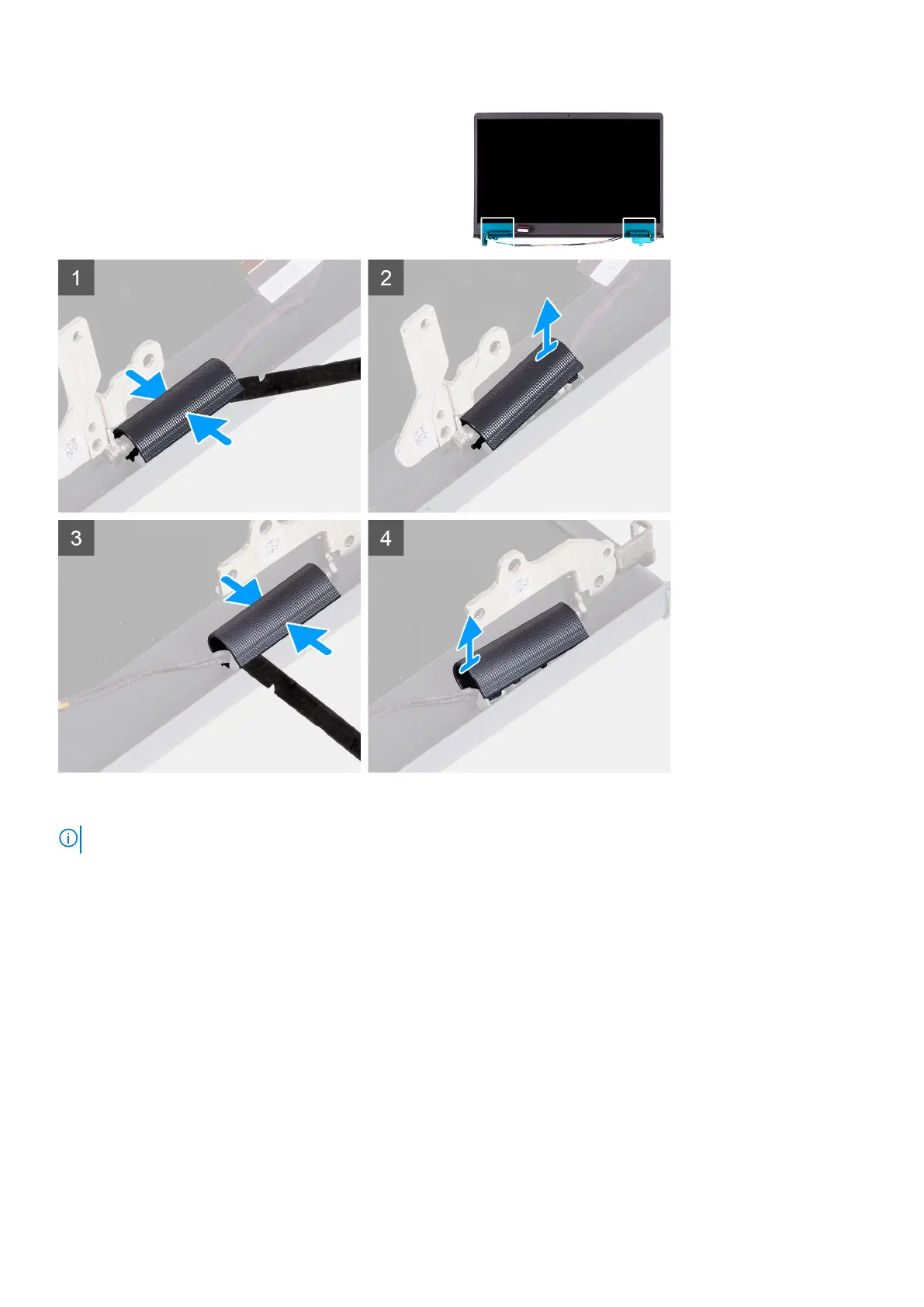 NOTE: Before removing the display hinge caps, open the display hinges to 140 degrees.