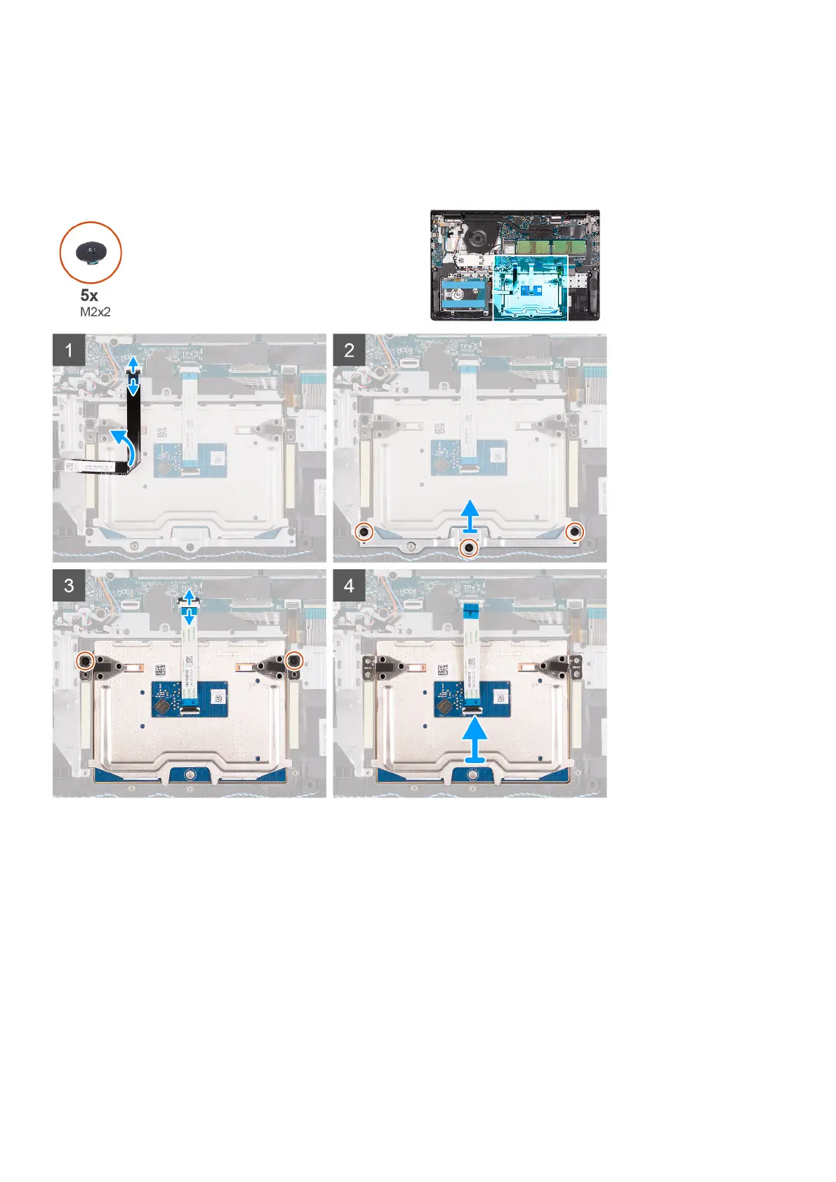 2. Remove the three screws (M2x2) that secure the touchpad bracket to the palmrest and keyboard assembly.