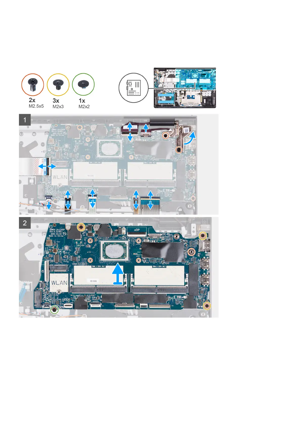 The following images indicate the location of the system board and provides a visual representation of the removal procedure.