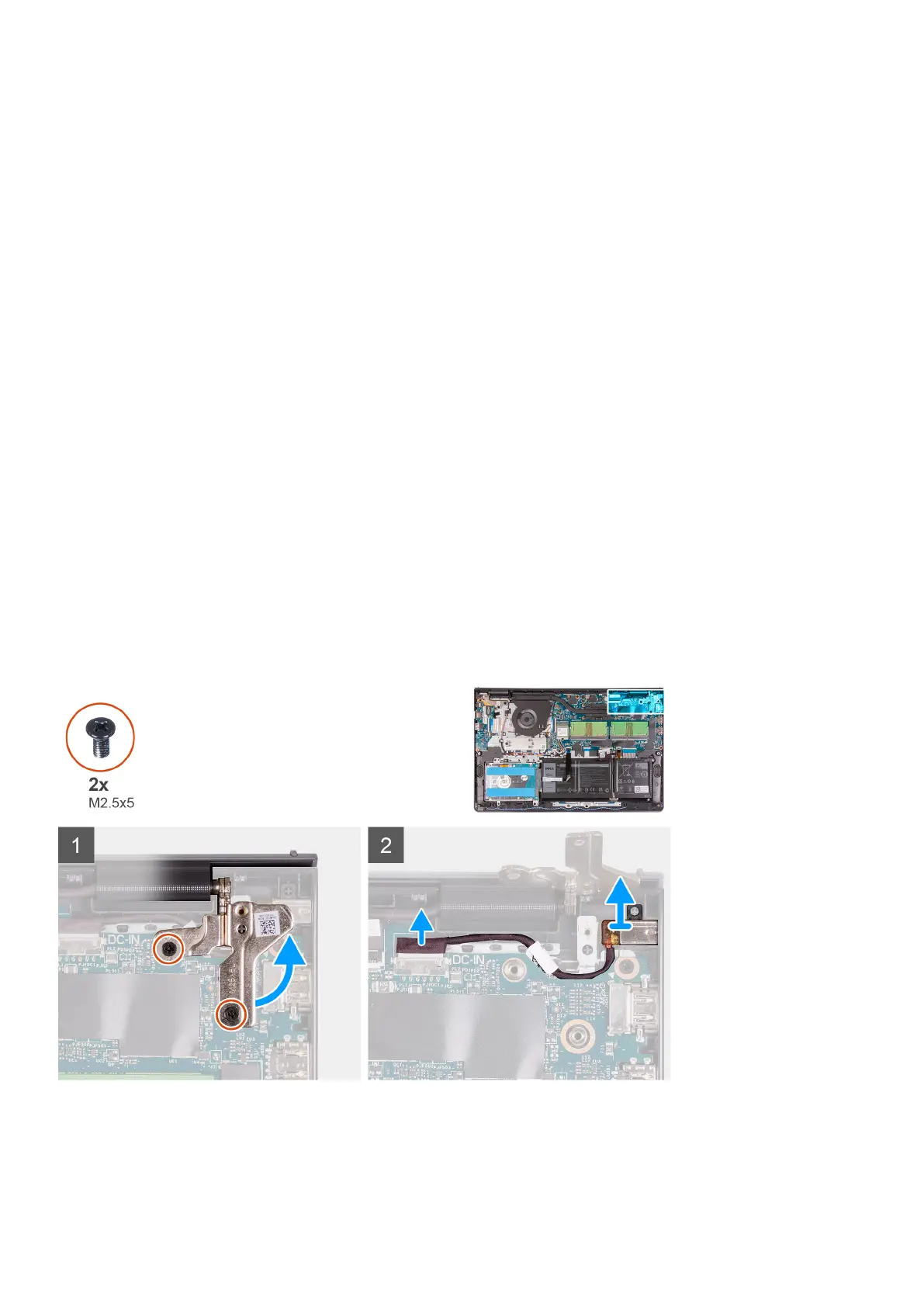 1. Remove the two (M2.5x5) screws that secure the right hinge to the palmrest and keyboard assembly
