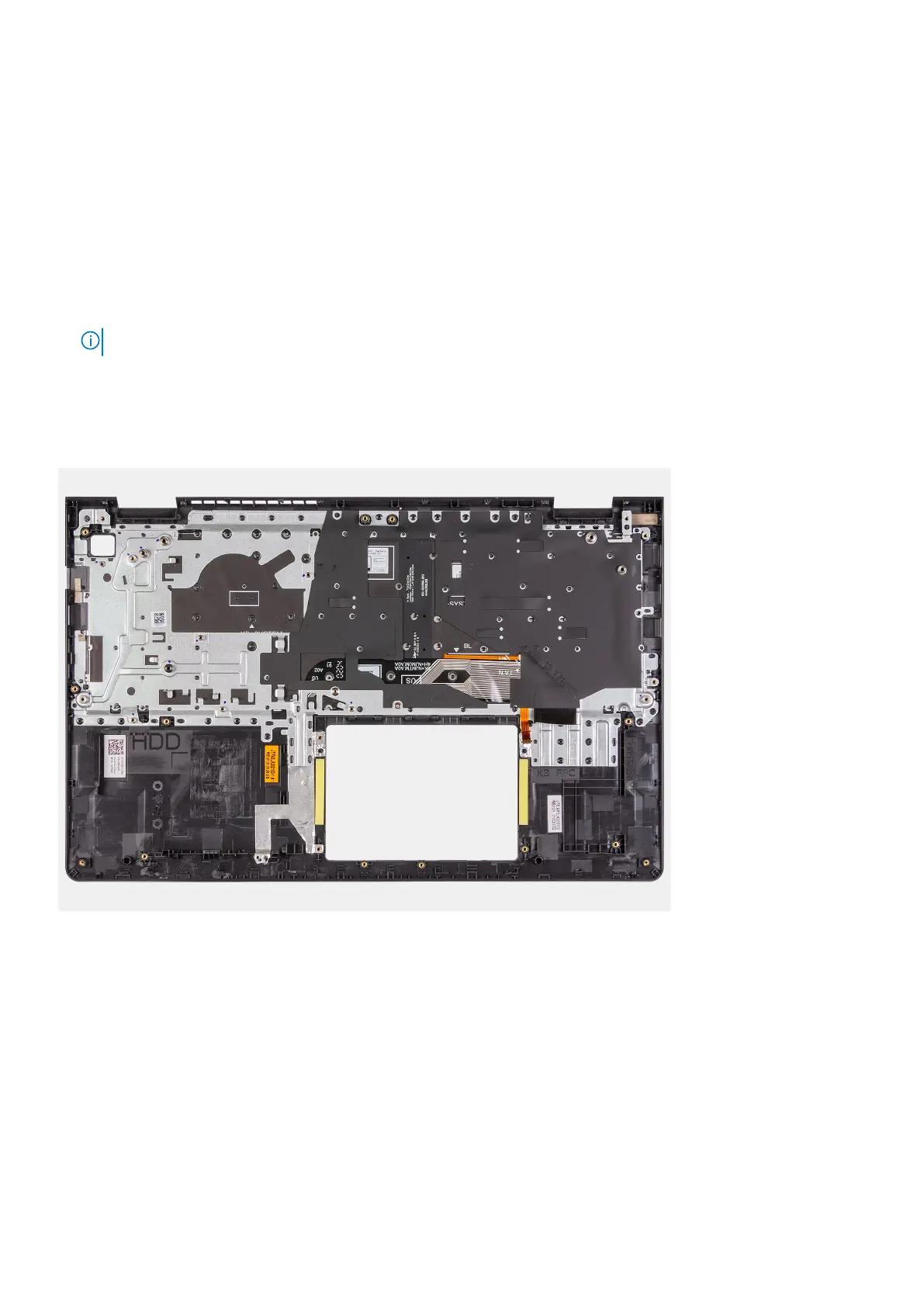 The following images indicate the location of the palmrest and keyboard assembly and provides a visual representation of the