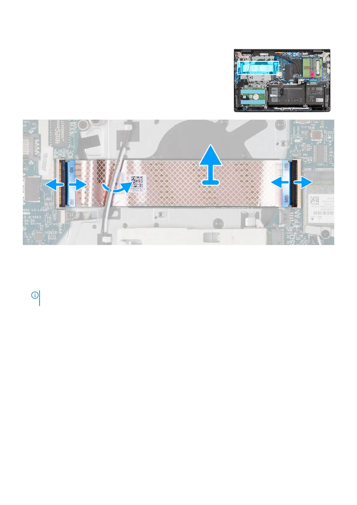 3. Lift the I/O daughter board cable off the palm-rest and keyboard assembly.