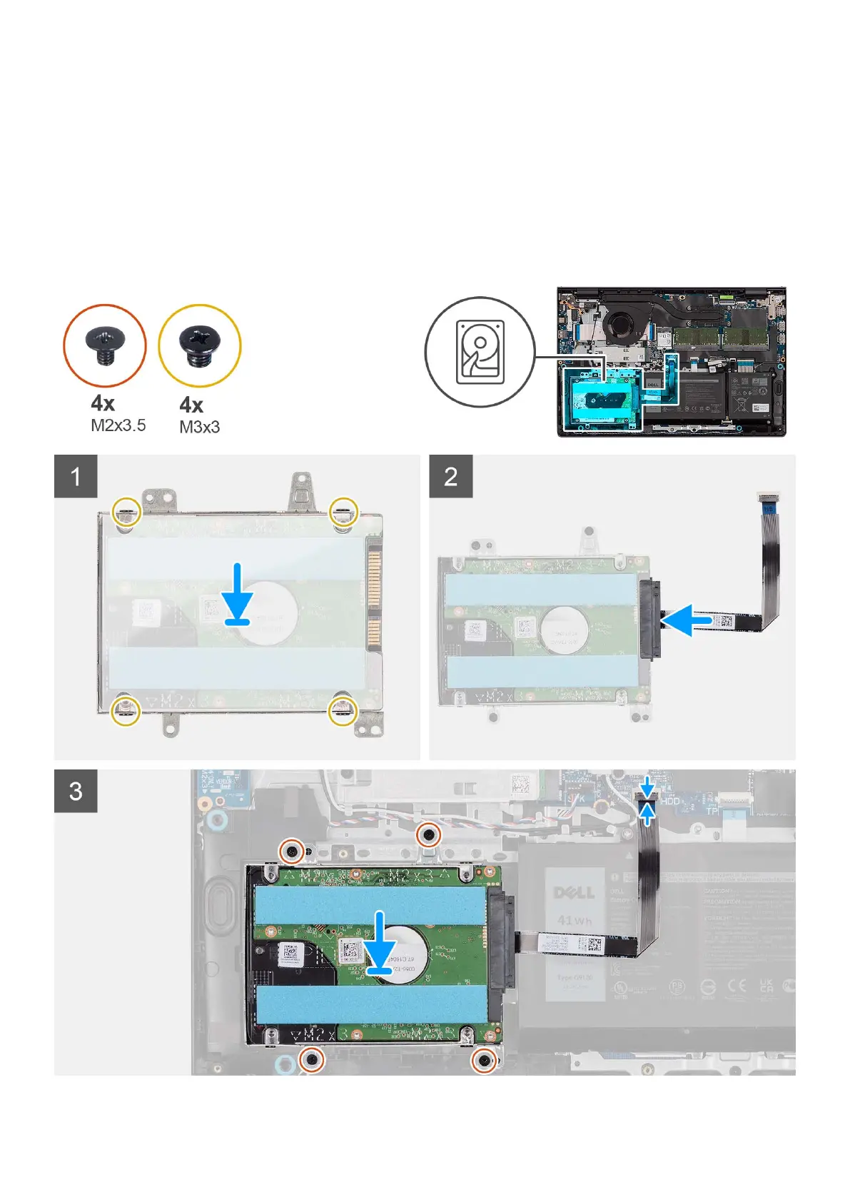The following images indicate the location of the hard drive assembly and provide a visual representation of the installation