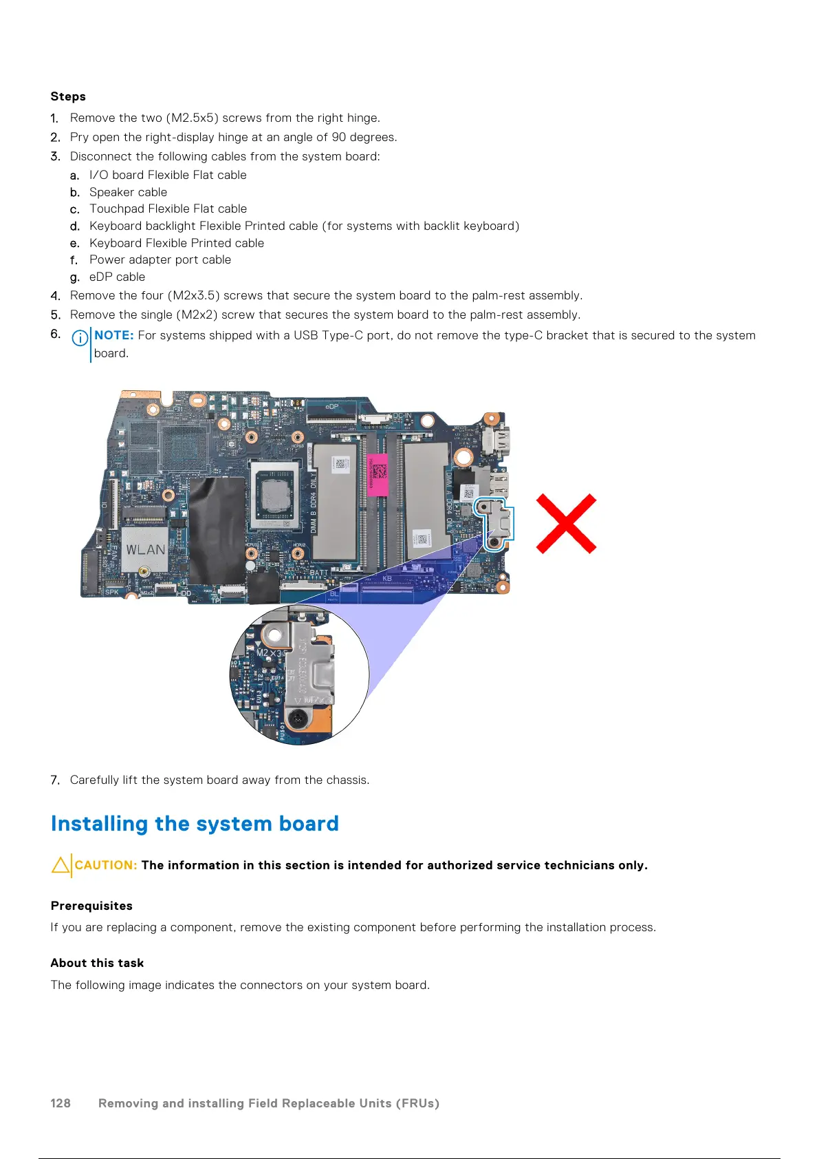 3. Disconnect the following cables from the system board: