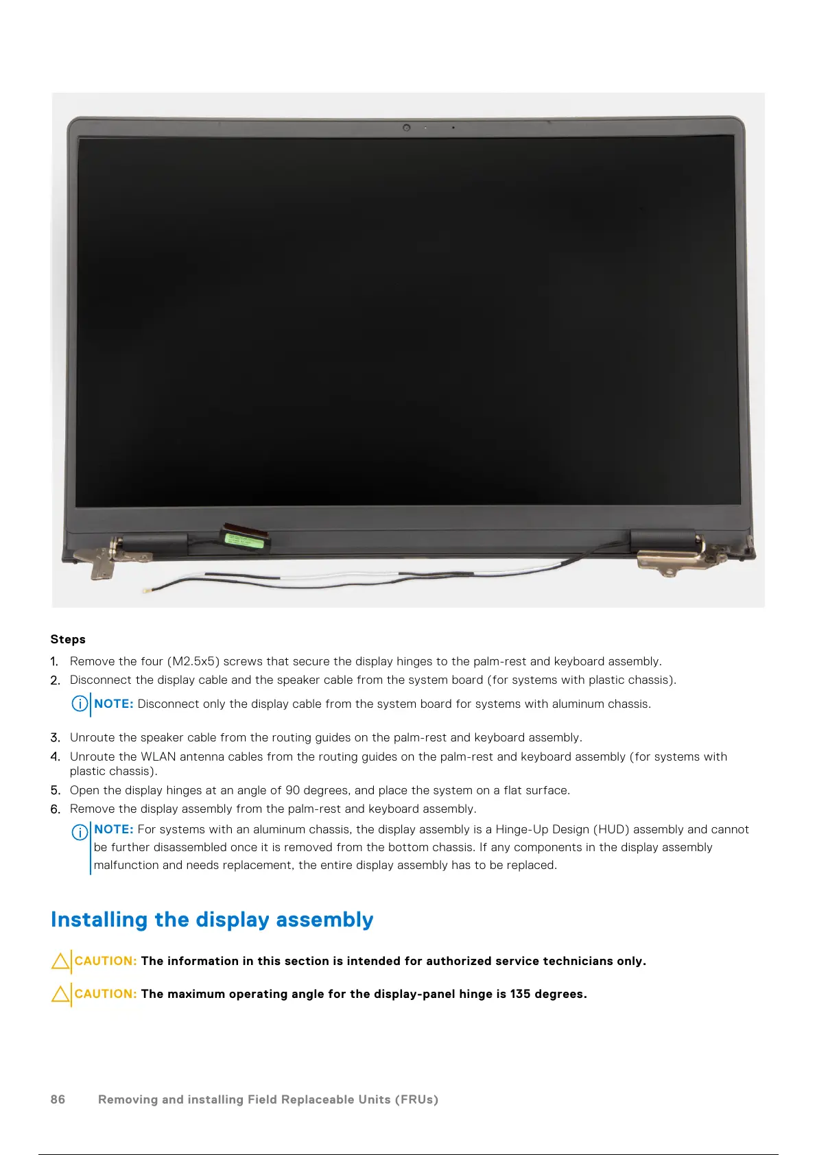 For systems with an aluminum chassis, the display assembly is a Hinge-Up Design (HUD) assembly and cannot