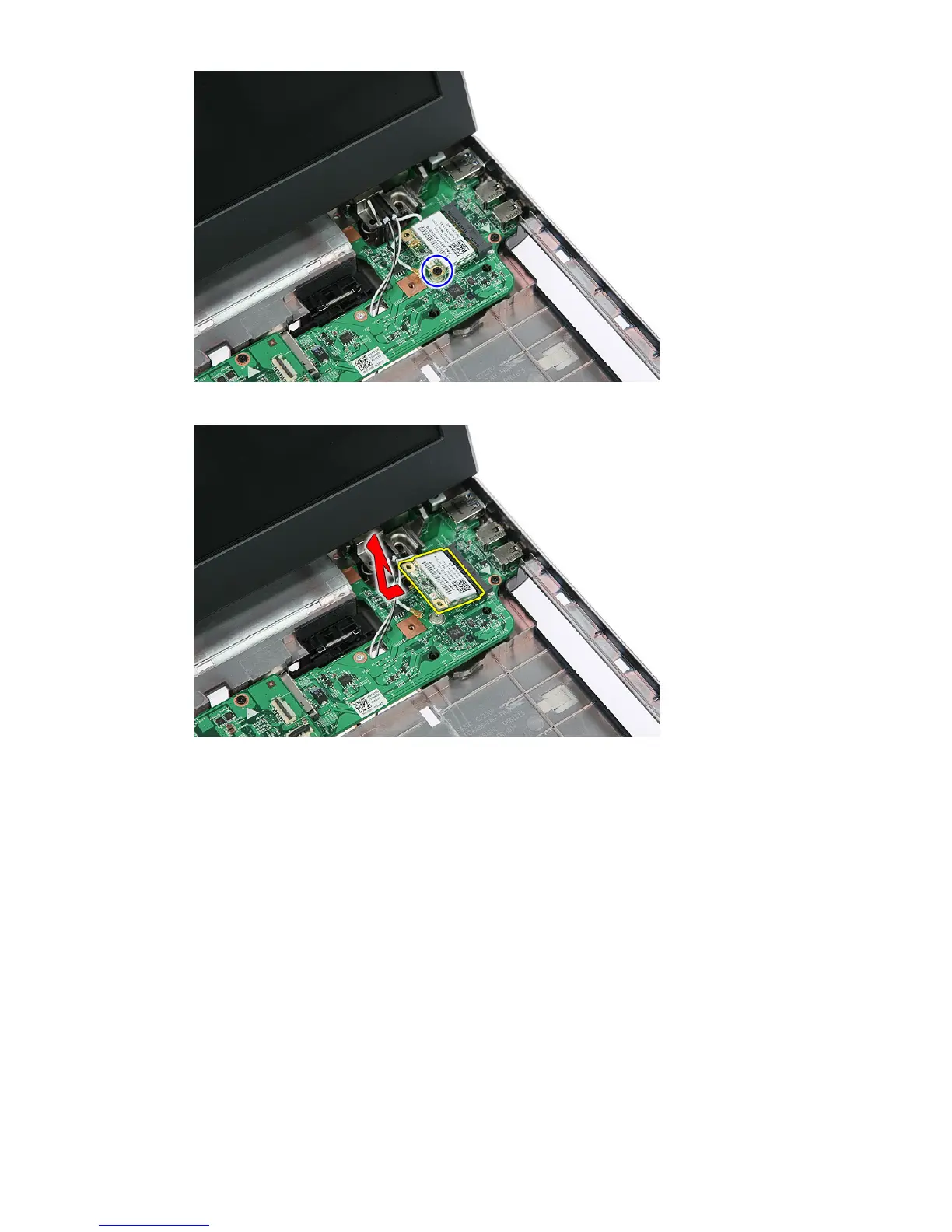 8. Remove the WLAN card from the computer.