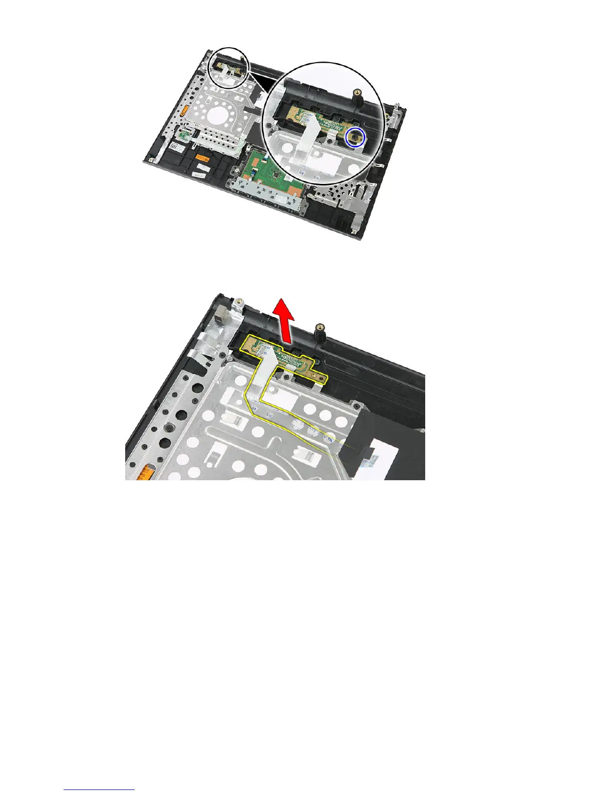 8. Lift up the quick-launch button board and remove.