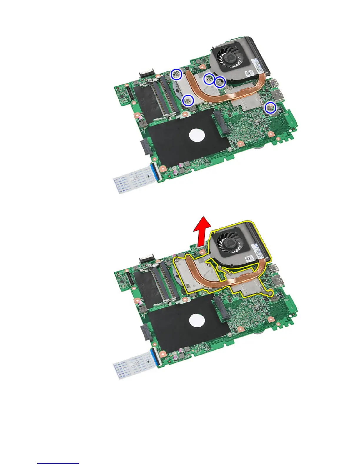 18. Lift up the heat sink and remove it from the system board.
