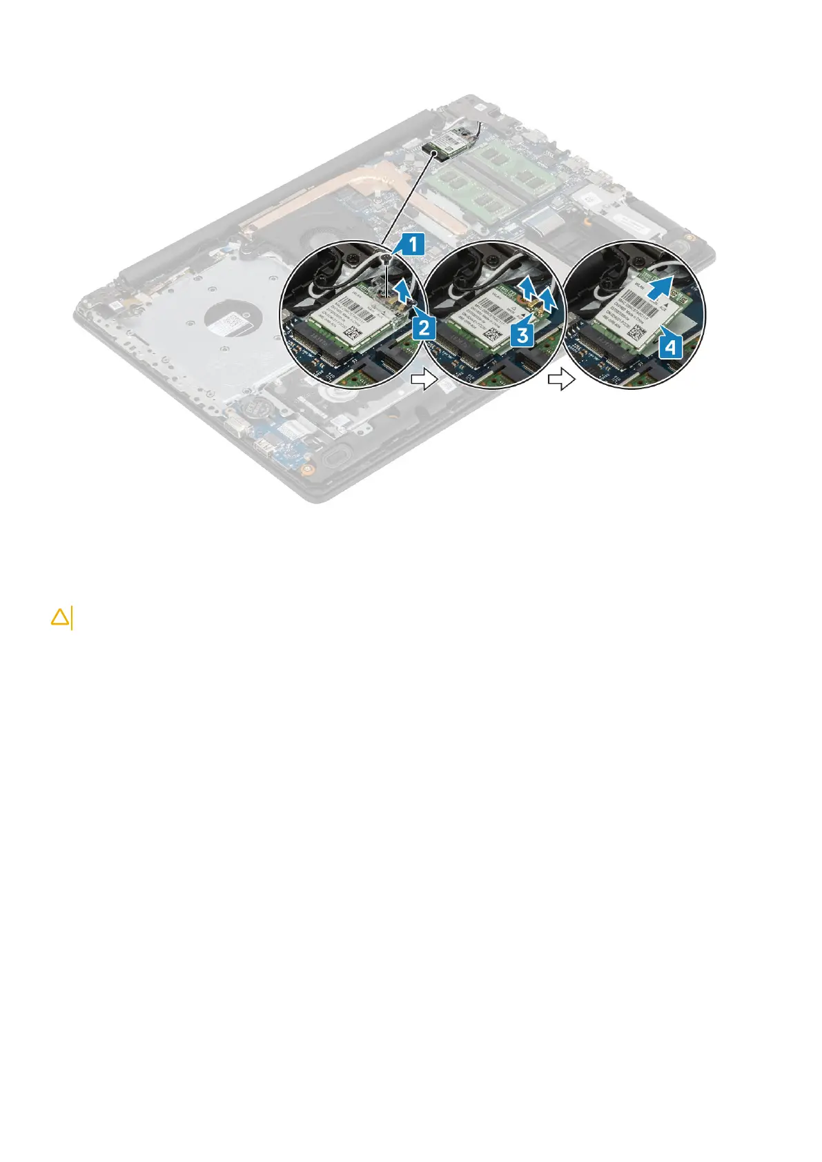 3. Place the WLAN card bracket to secure the WLAN cables to the WLAN card [3].