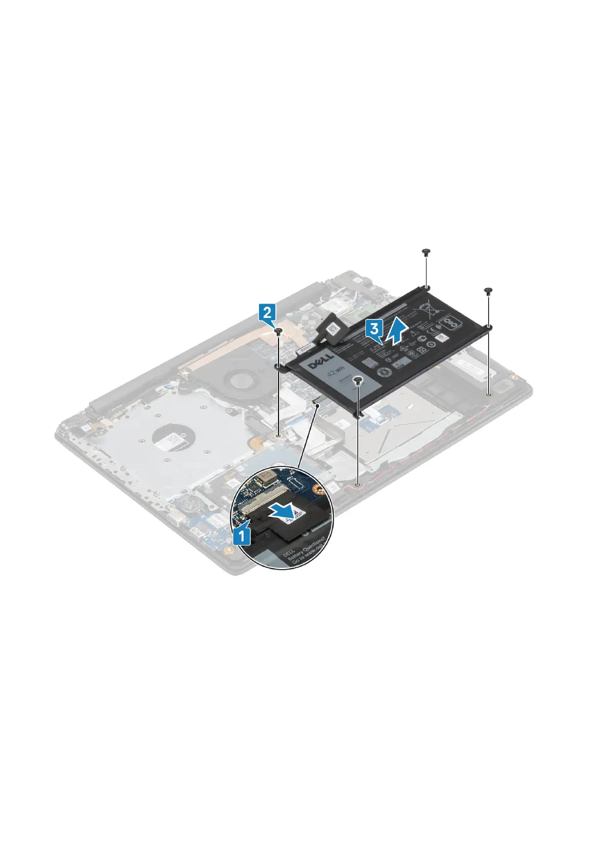 1. Disconnect the battery cable from the system board [1].