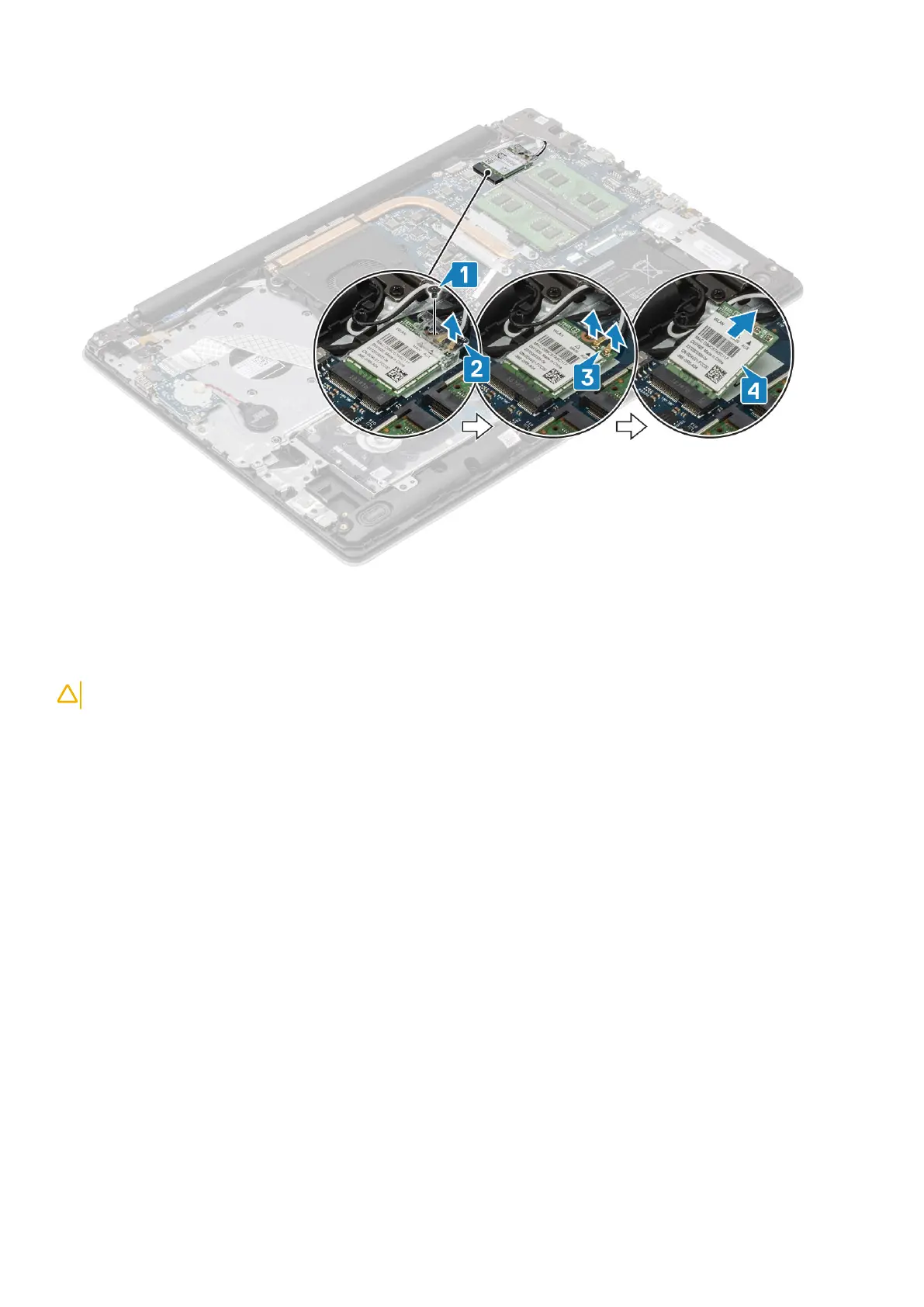3. Place the WLAN card bracket to secure the WLAN cables to the WLAN card [3].