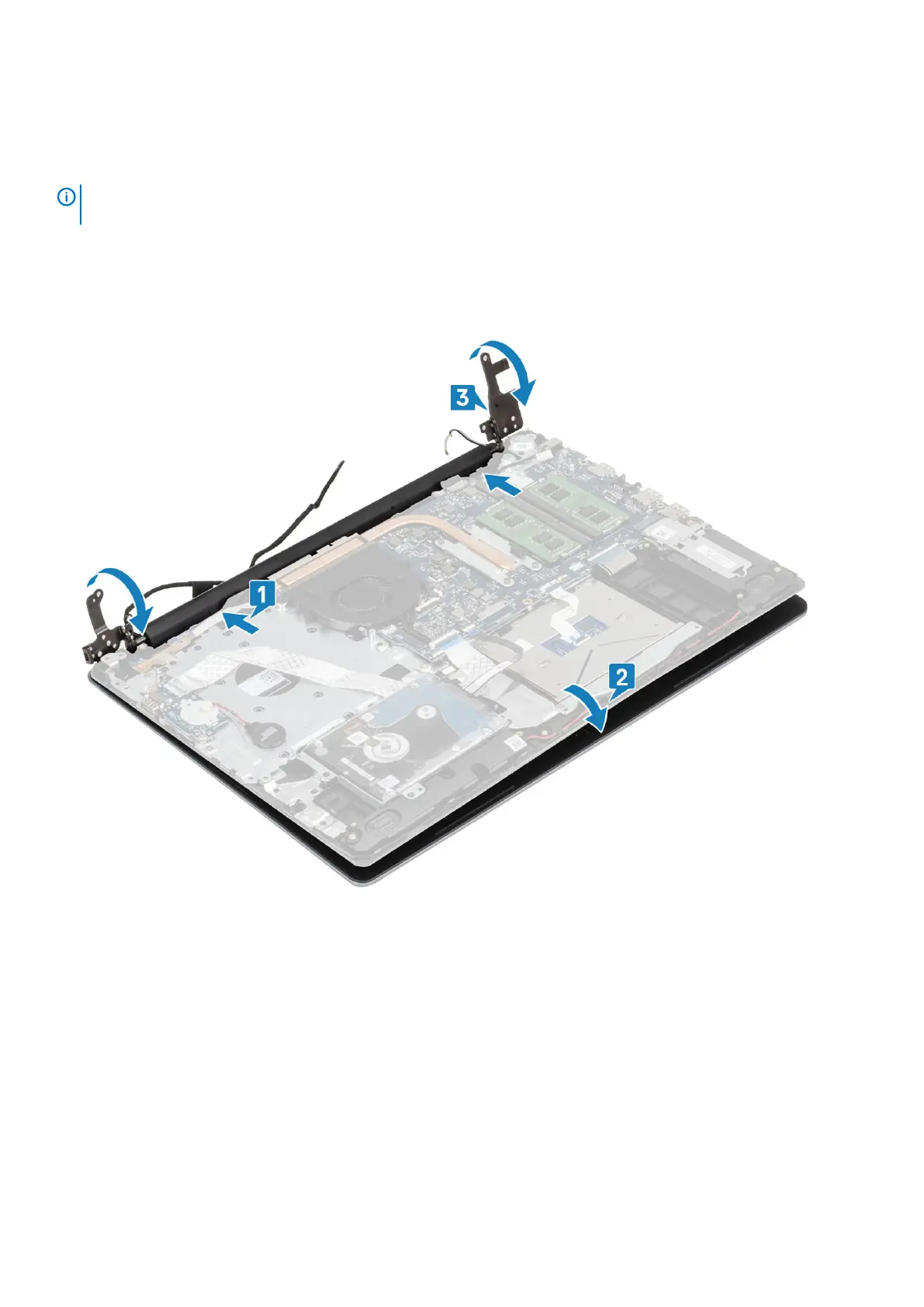 NOTE: Ensure that the hinges are opened to the maximum before replacing the display assembly on the palmrest and