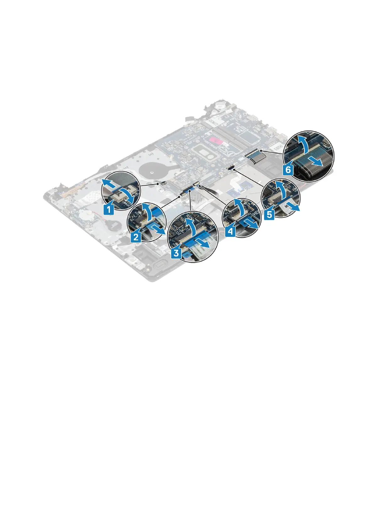 4. Lift the system board off the palmrest and keyboard assembly [2].