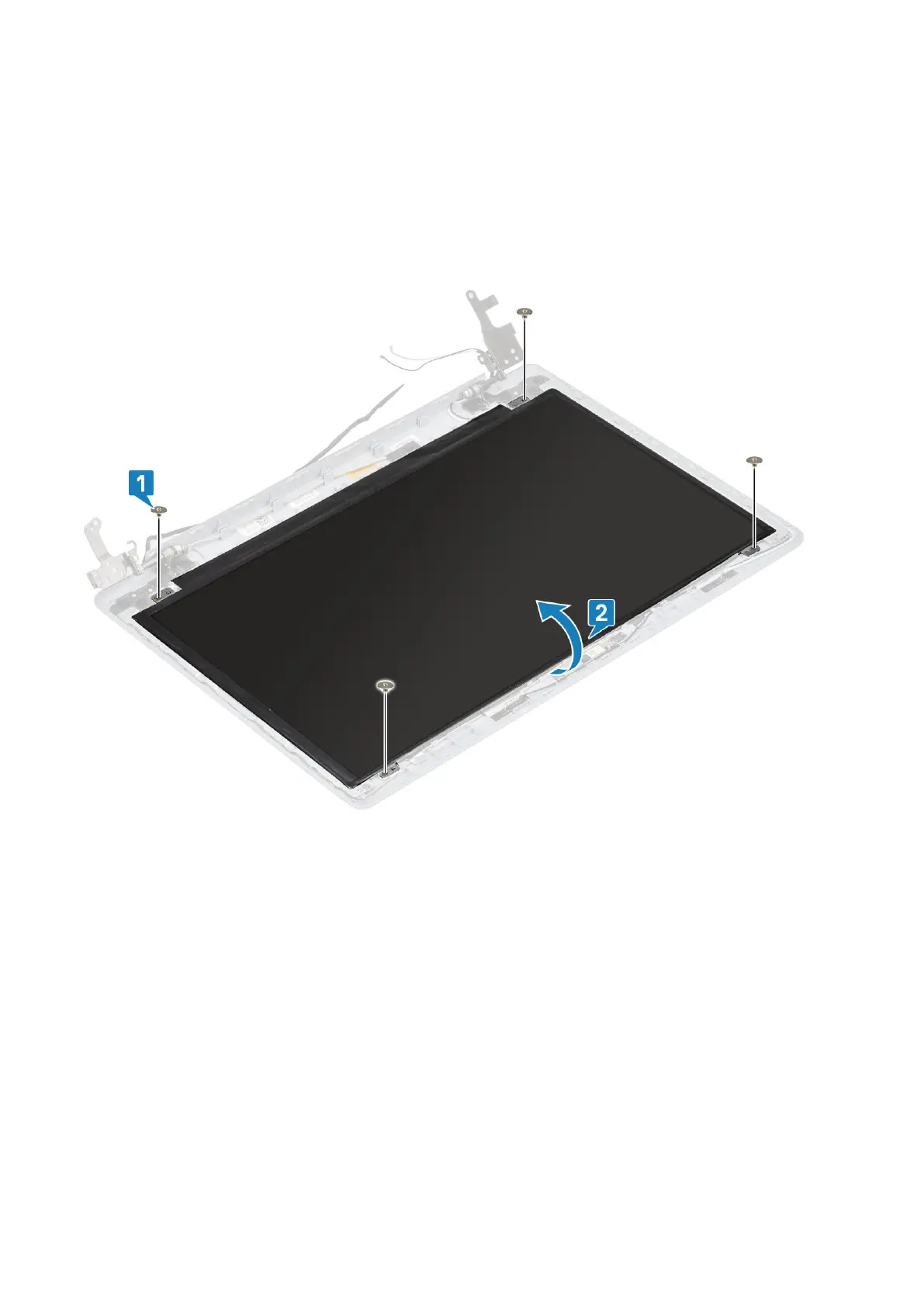 1. Remove the four (M2x2) screws that secure the display panel to the display back-cover and antenna assembly [1].