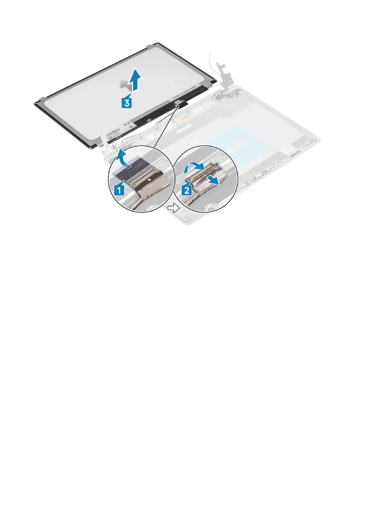 2. Connect the display cable to the connector at the back of the display panel and close the latch to secure the cable [2].