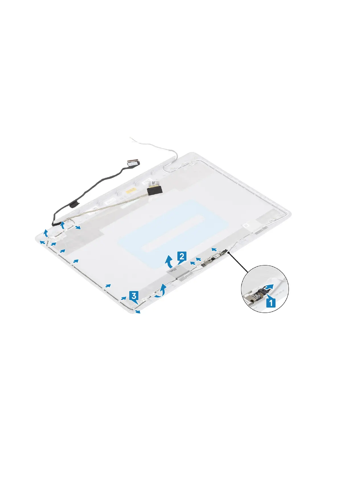 2. Peel the adhesive that secures the camera cable [2].