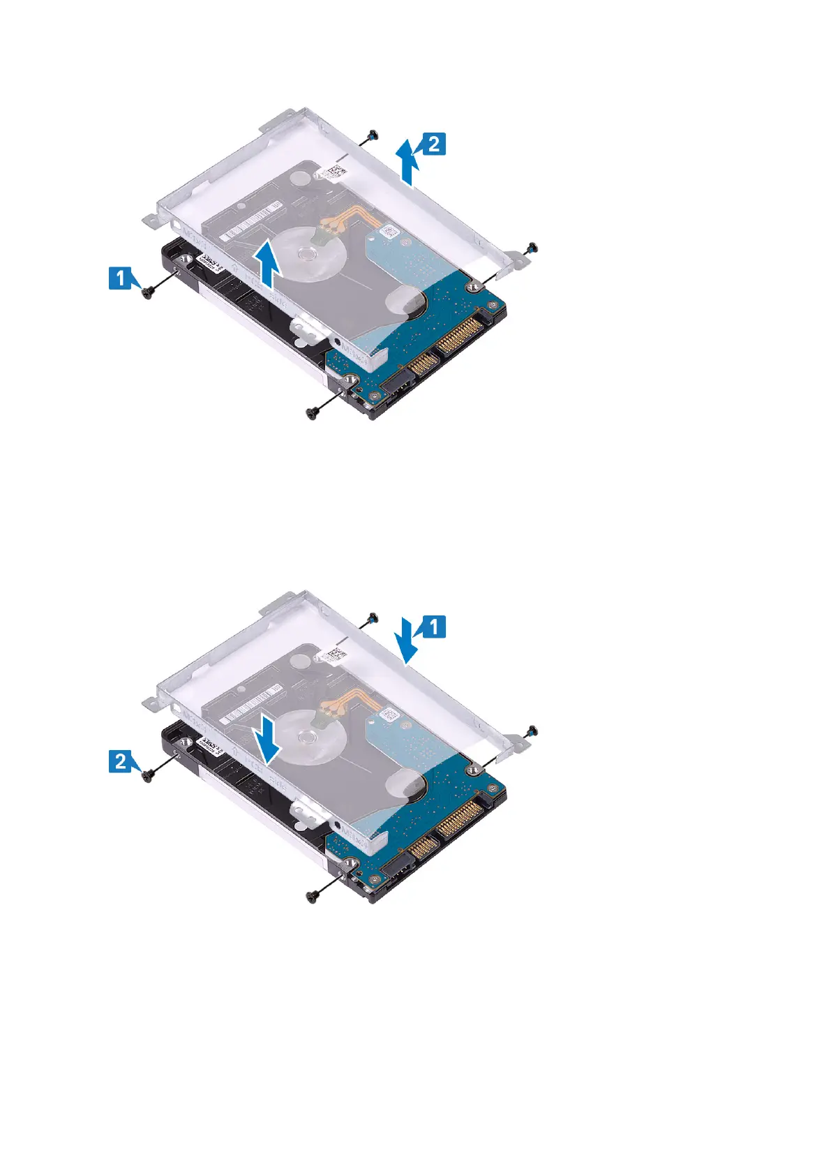 2. Replace the four (M3x3) screws that secure the hard drive bracket to the hard drive [2].