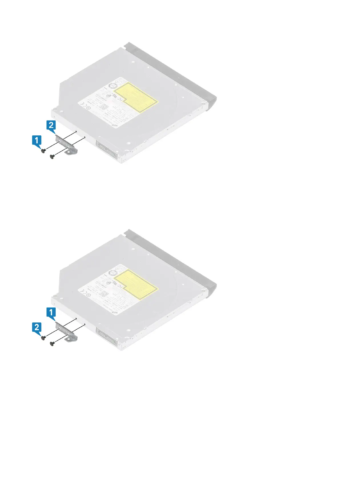 1. Align the optical drive bracket to the screw holes on the optical drive [1].
