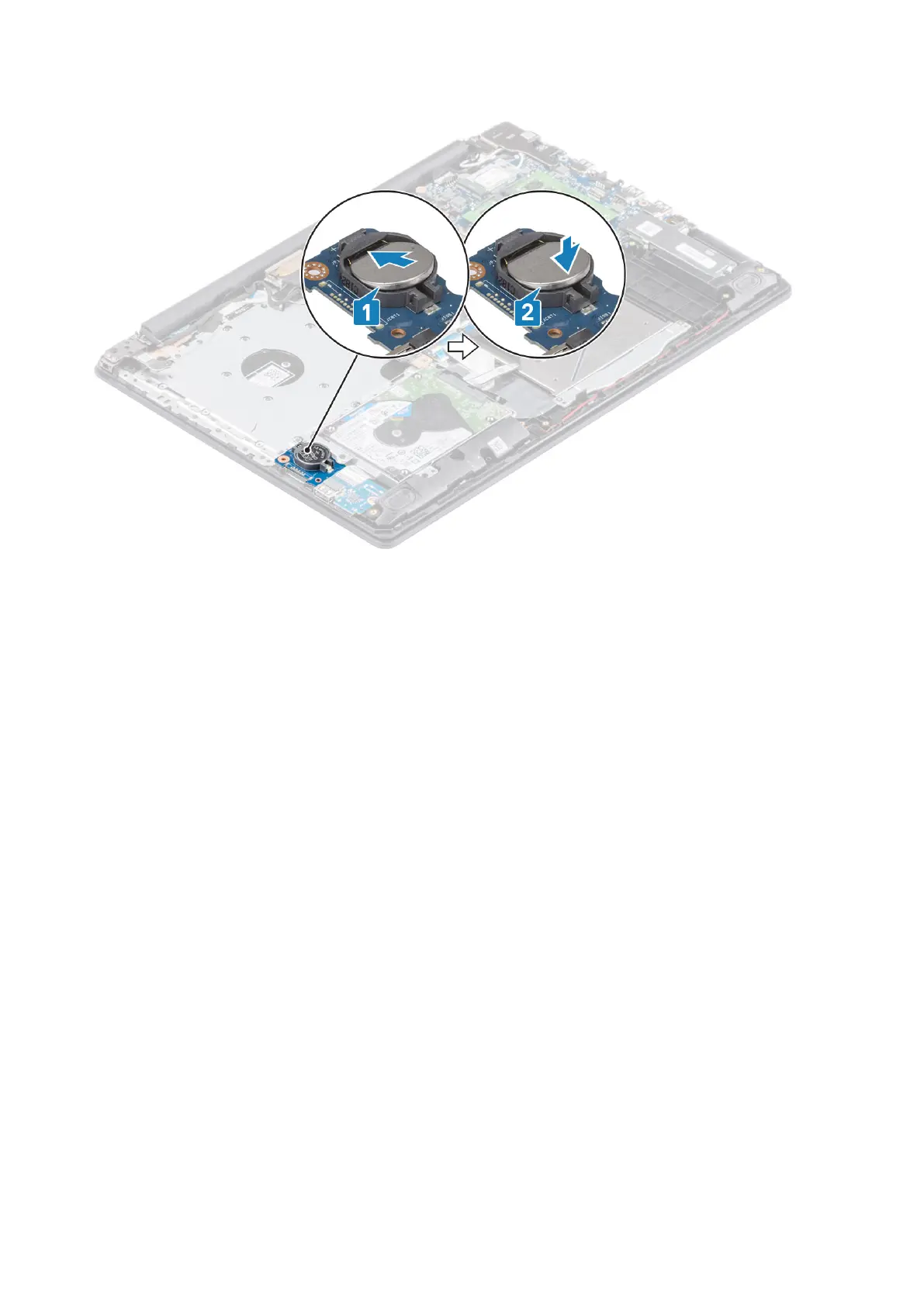 1. Connect the battery cable to the connector on the system board.