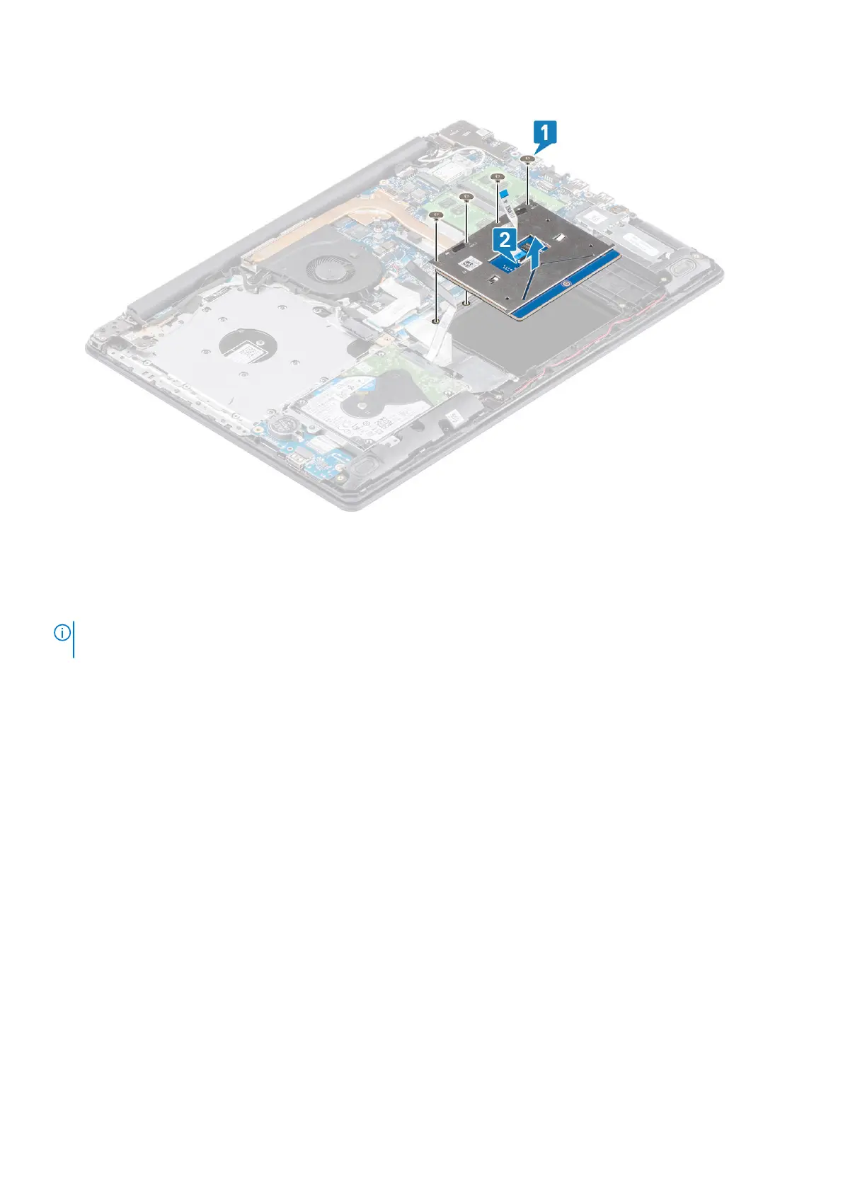 2. Replace the four (M2x2) screws that secure the touch pad to the palmrest and keyboard assembly [2].
